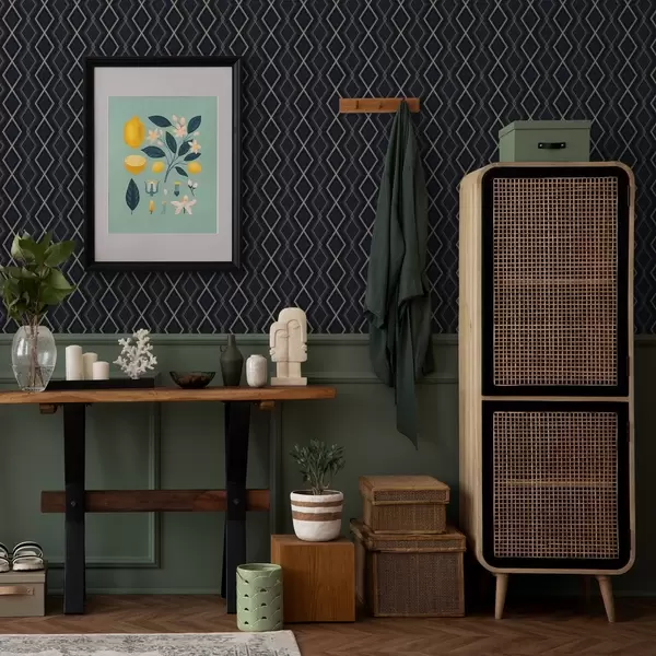 Papel de parede Grade de diamantes azul escuro com linhas finas claras Nr. a00975