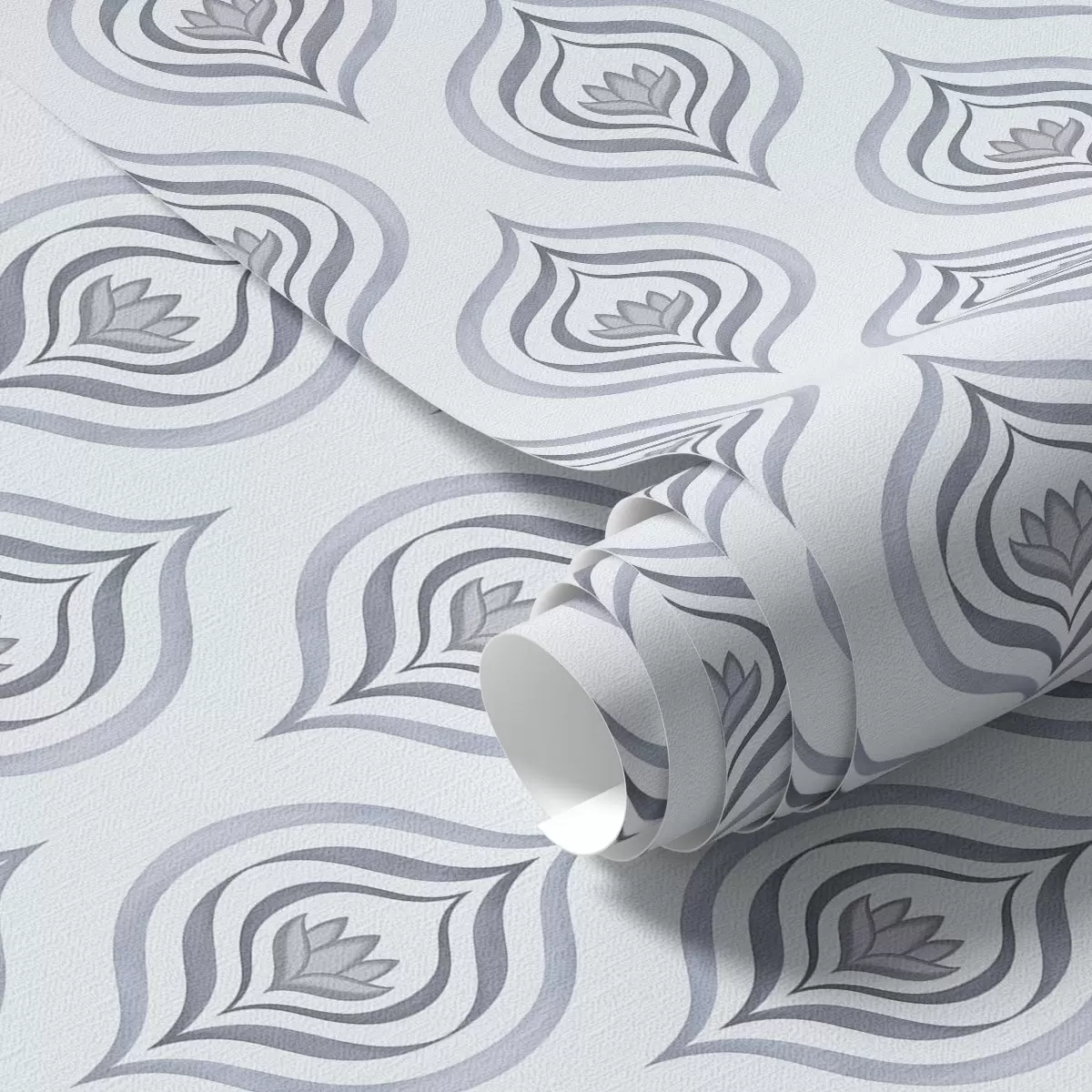Papel de parede Motivo de gota bacana com uma flor em tons de cinza-azulado Nr. a00977v3