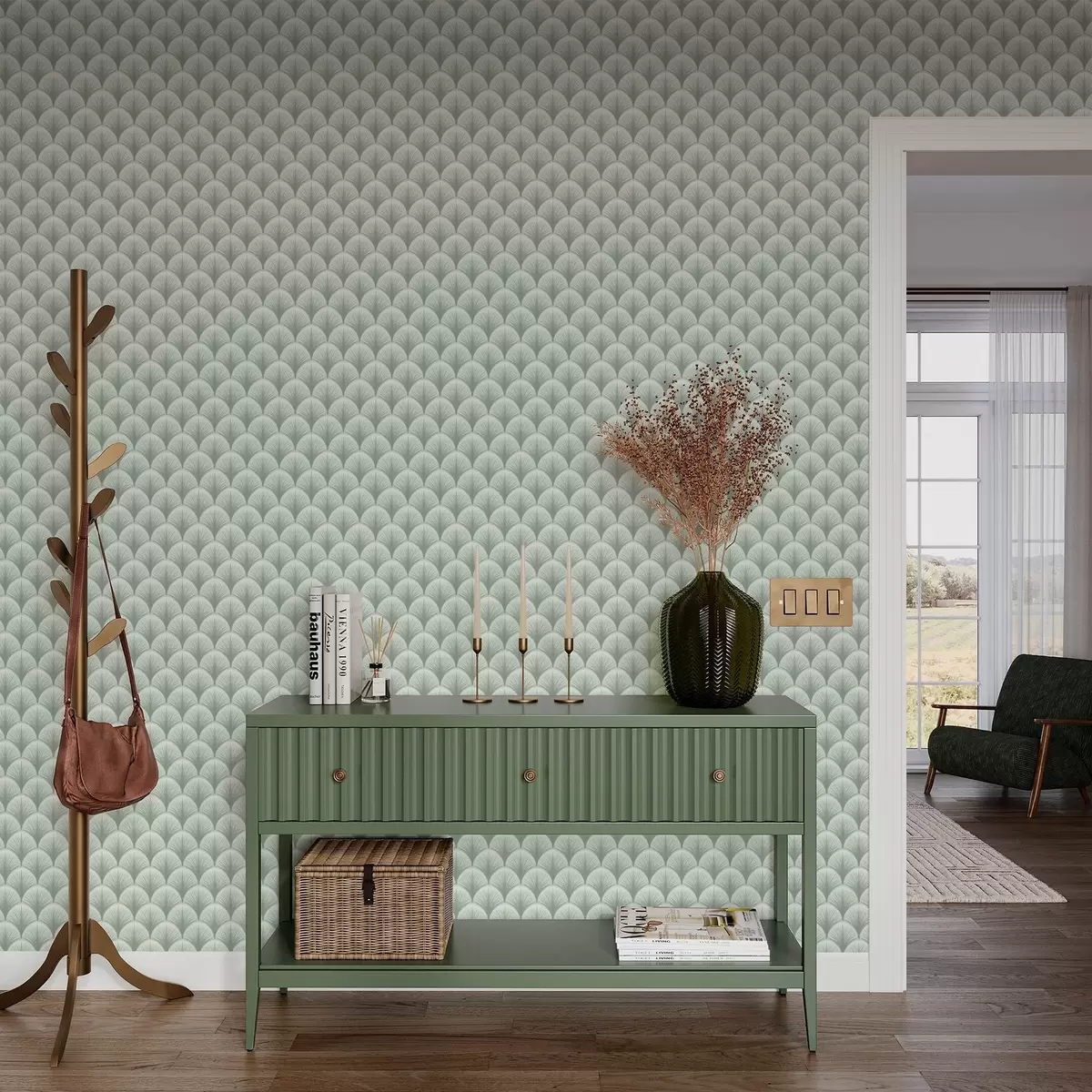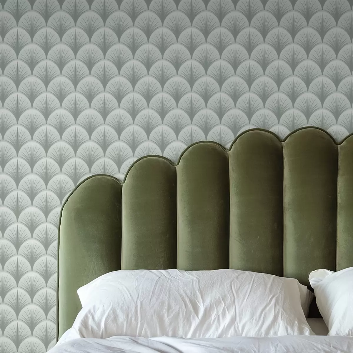 Papel de parede Arcos em forma de leque com raios sobre um fundo verde suave Nr. a00978v2
