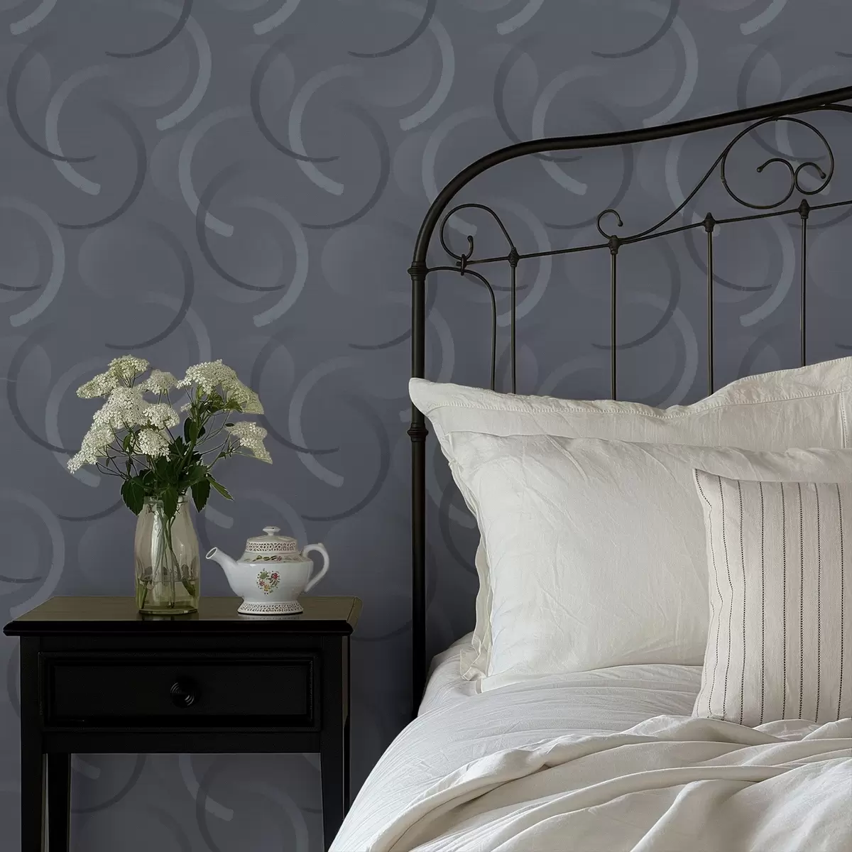 Papel de parede Meios círculos cinzentos e círculos desfocados sobre um fundo texturizado Nr. a00981
