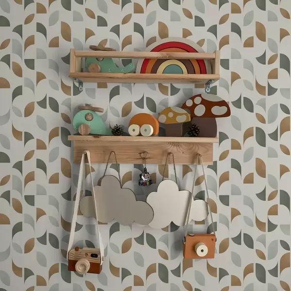 Papel de parede Meios círculos abstratos e folhas em verde e terracota Nr. a00985