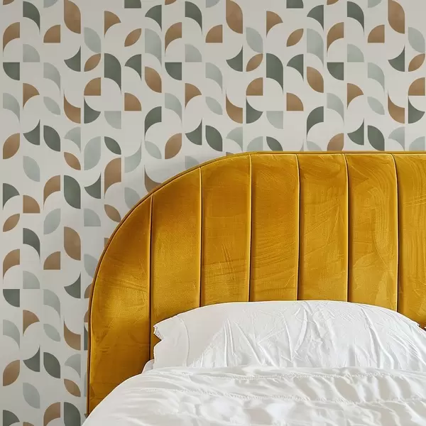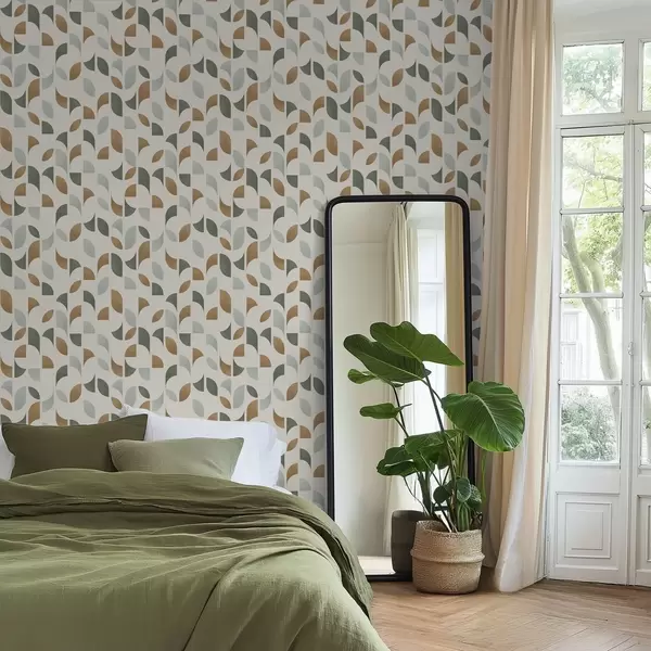 Papel de parede Meios círculos abstratos e folhas em verde e terracota Nr. a00985