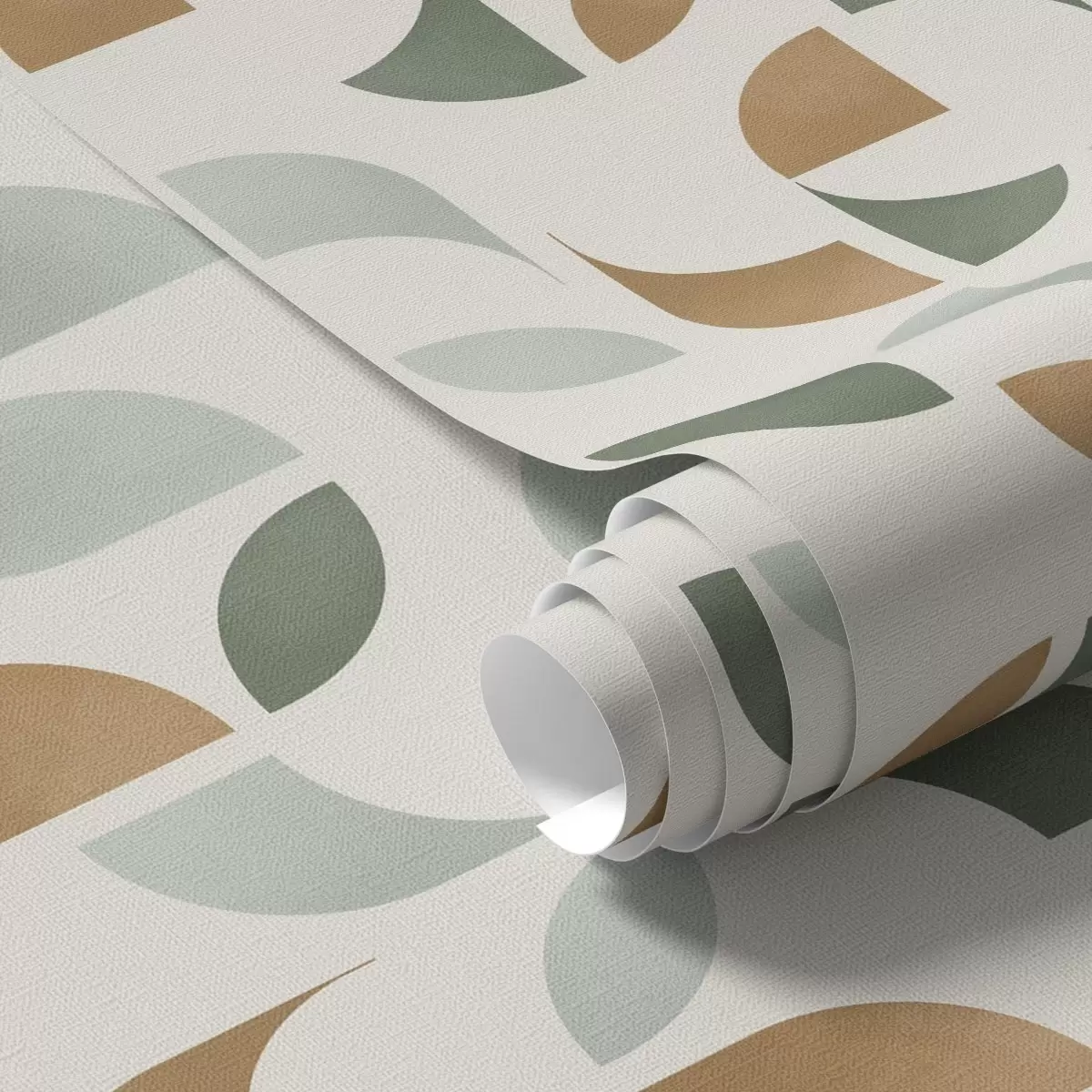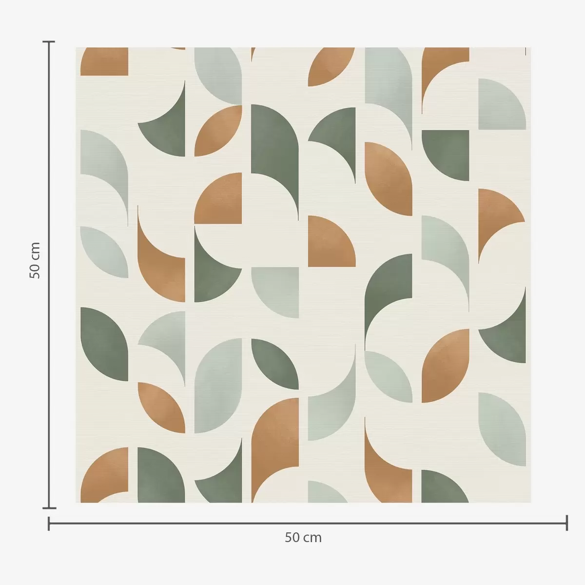 Papel de parede Meios círculos abstratos e folhas em verde e terracota Nr. a00985