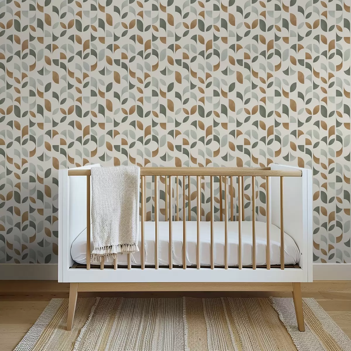 Papel de parede Colunas verticais de semicírculos e folhas, verde-terracota Nr. a00986
