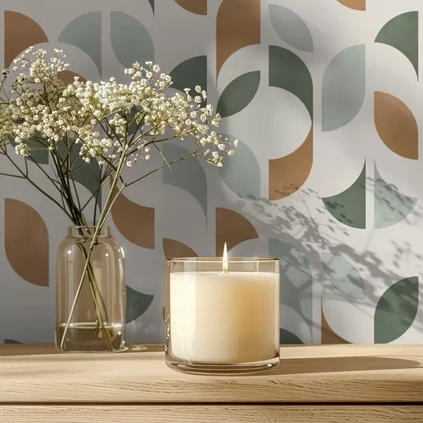 Papel de parede Colunas verticais de semicírculos e folhas, verde-terracota Nr. a00986