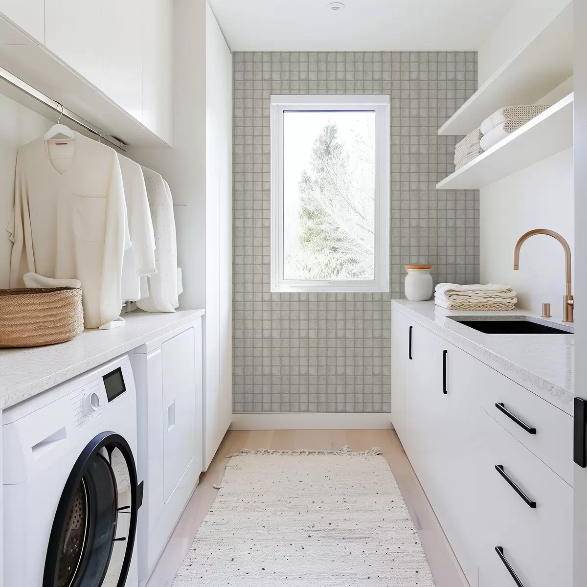 Papel de parede Imitação de azulejos quadrados em uma paleta suave de cinza-esverdeado Nr. a00988