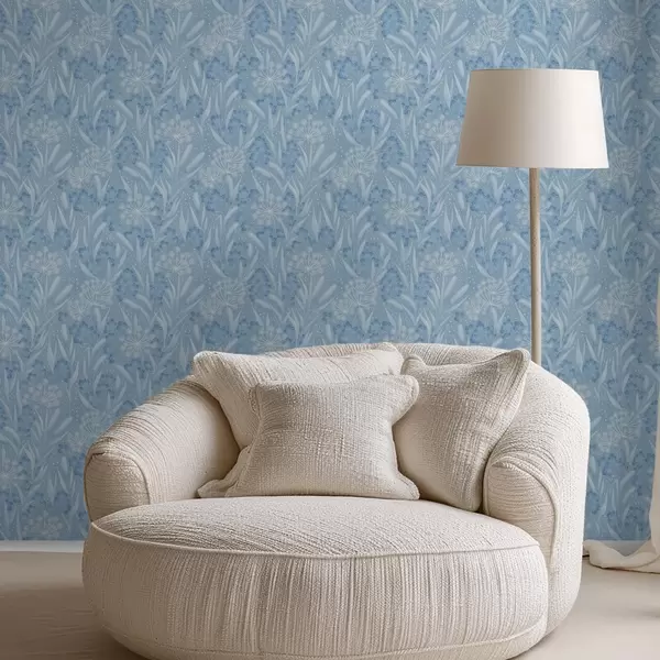 Papel de parede Prado azul gelado com sementes de dente-de-leão e pequenas flores a00995