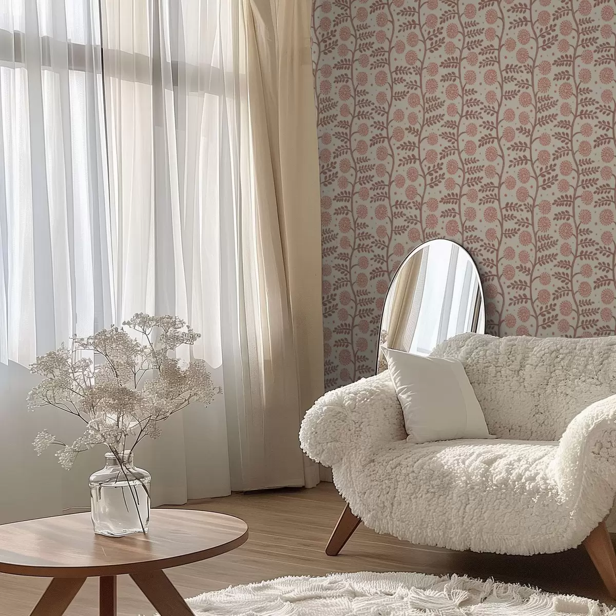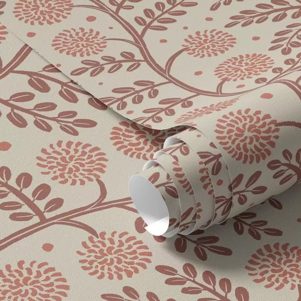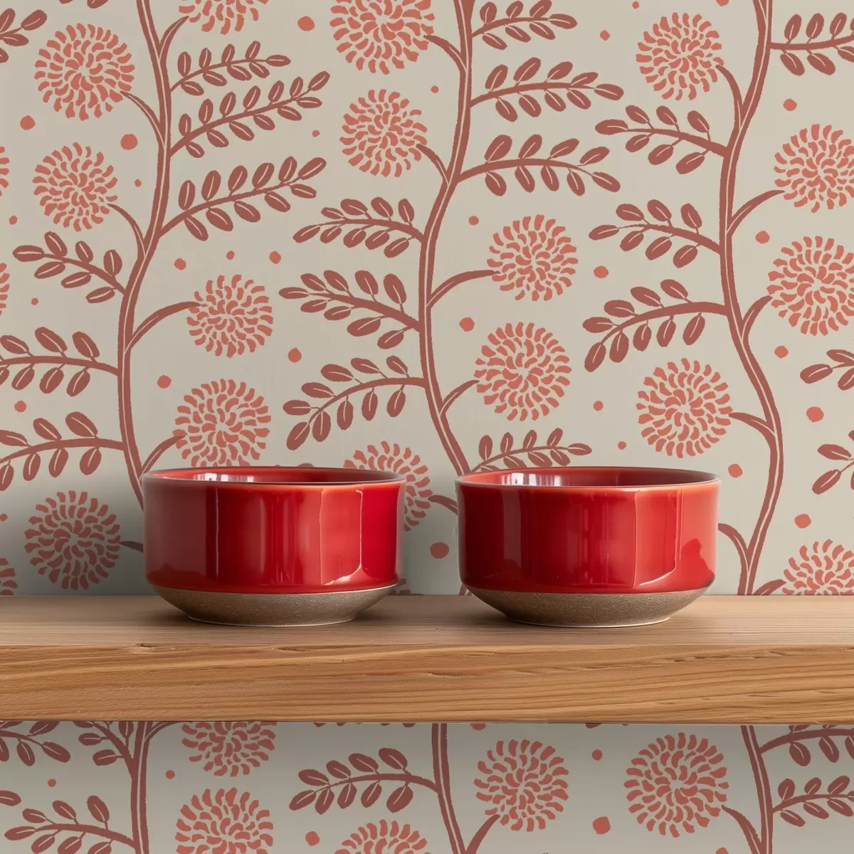 Papel de parede Caules em terracota com flores corais fofas sobre um fundo creme Nr. a00997v1