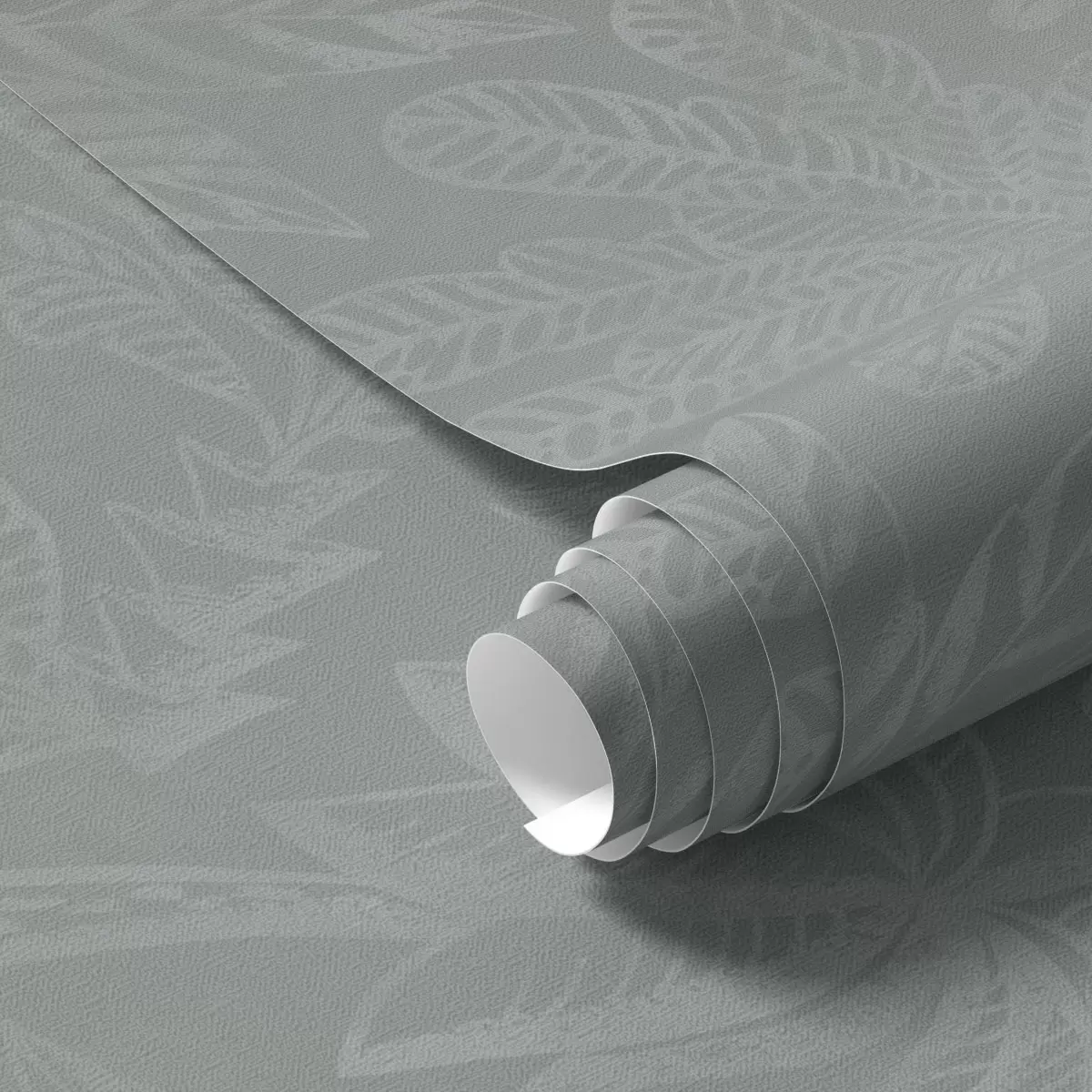 Papel de parede Folhas tropicais grandes e foscas em uma paleta cinza-menta Nr. a01001