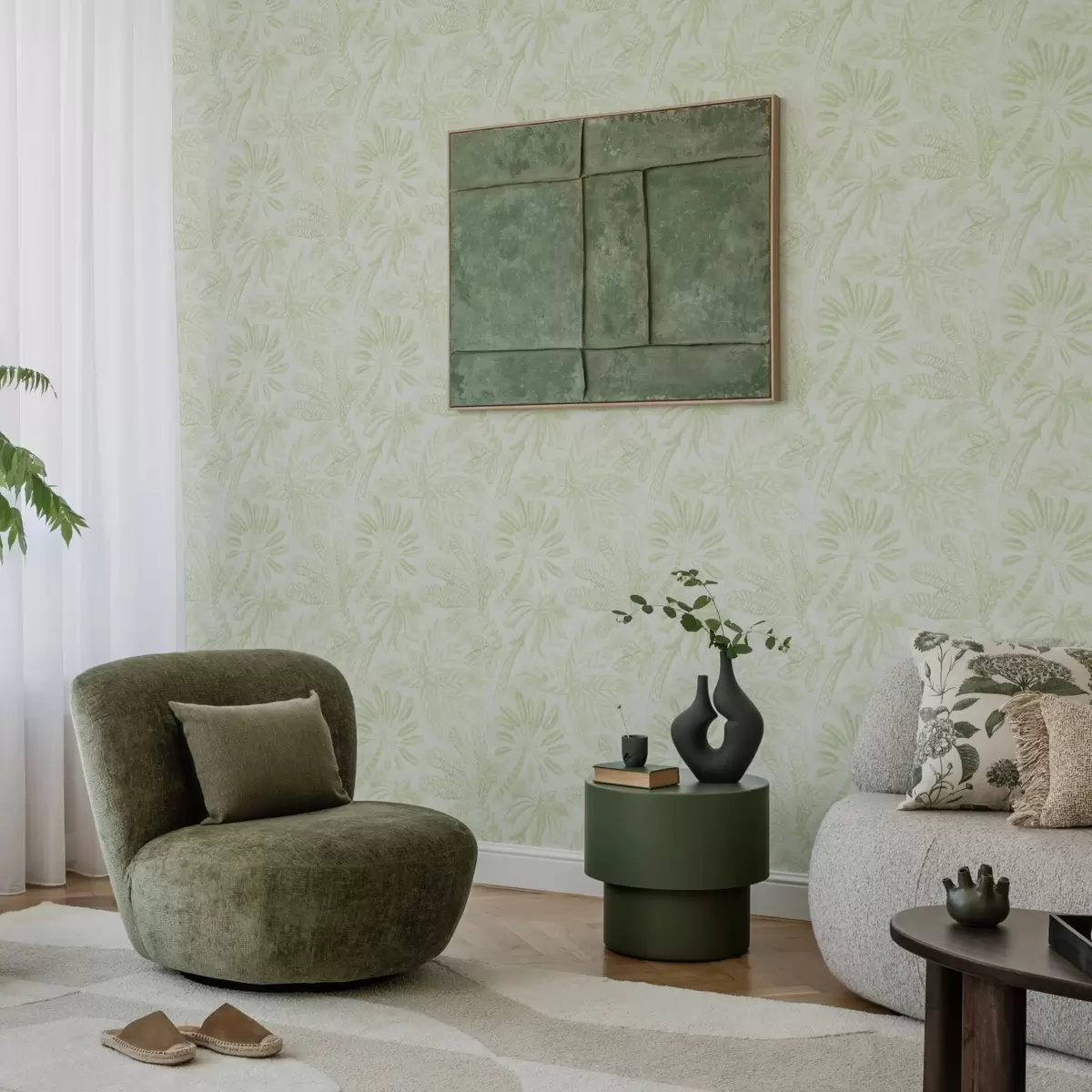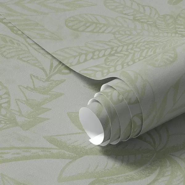 Papel de parede Folhas tropicais esboçadas em tons frescos de verde claro Nr. a01001v1