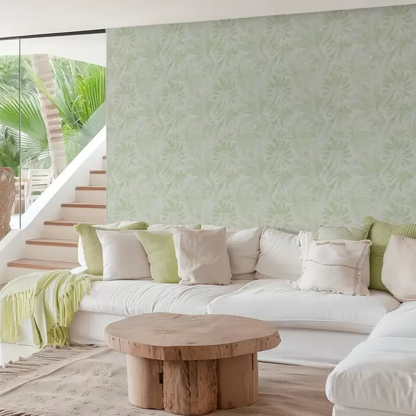 Papel de parede Folhas tropicais esboçadas em tons frescos de verde claro Nr. a01001v1