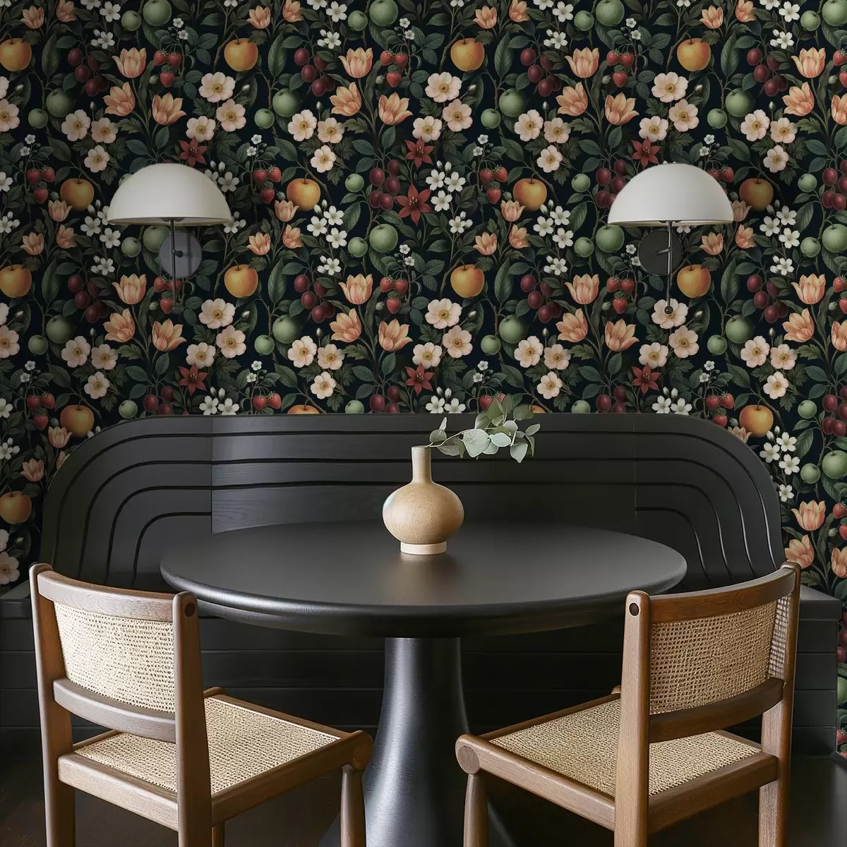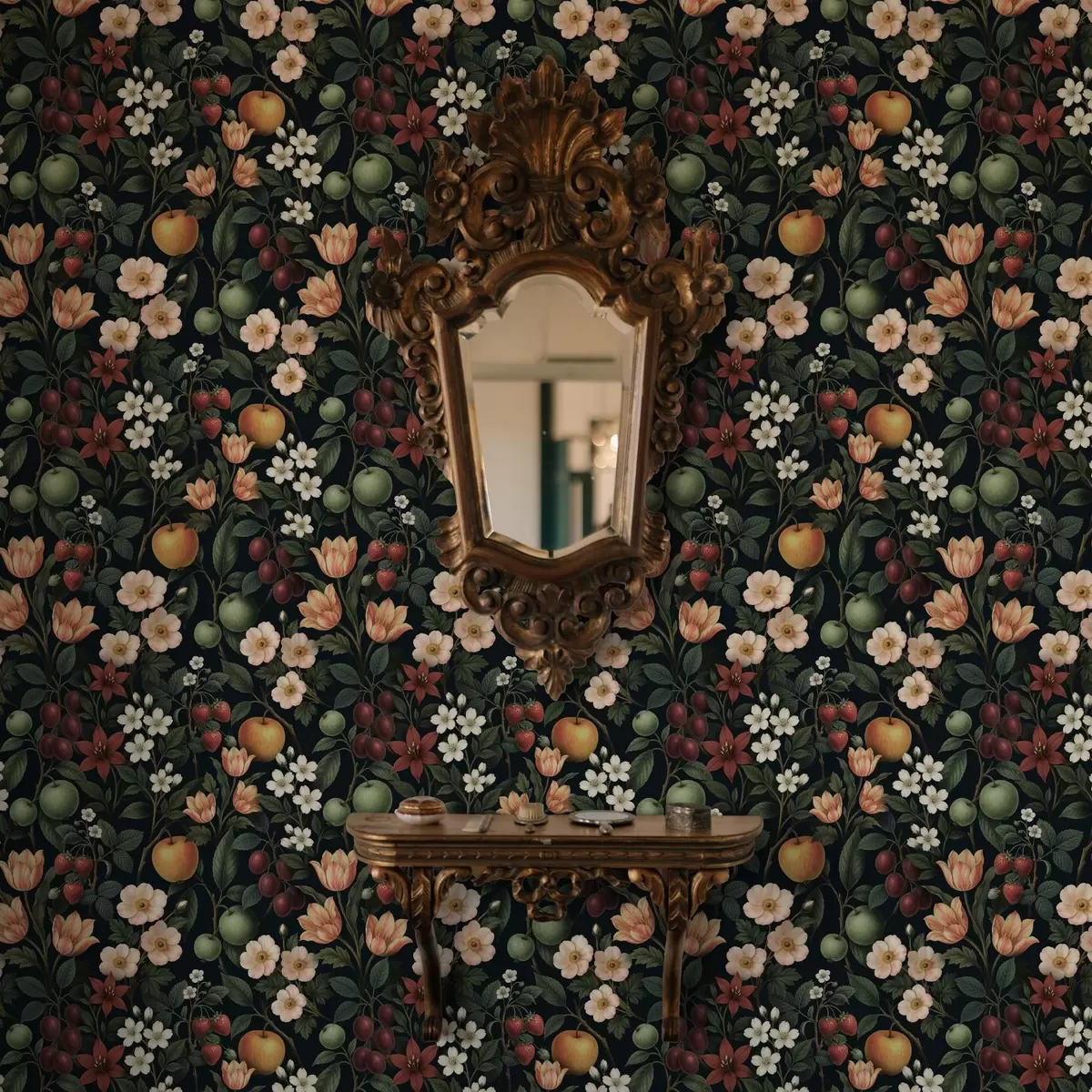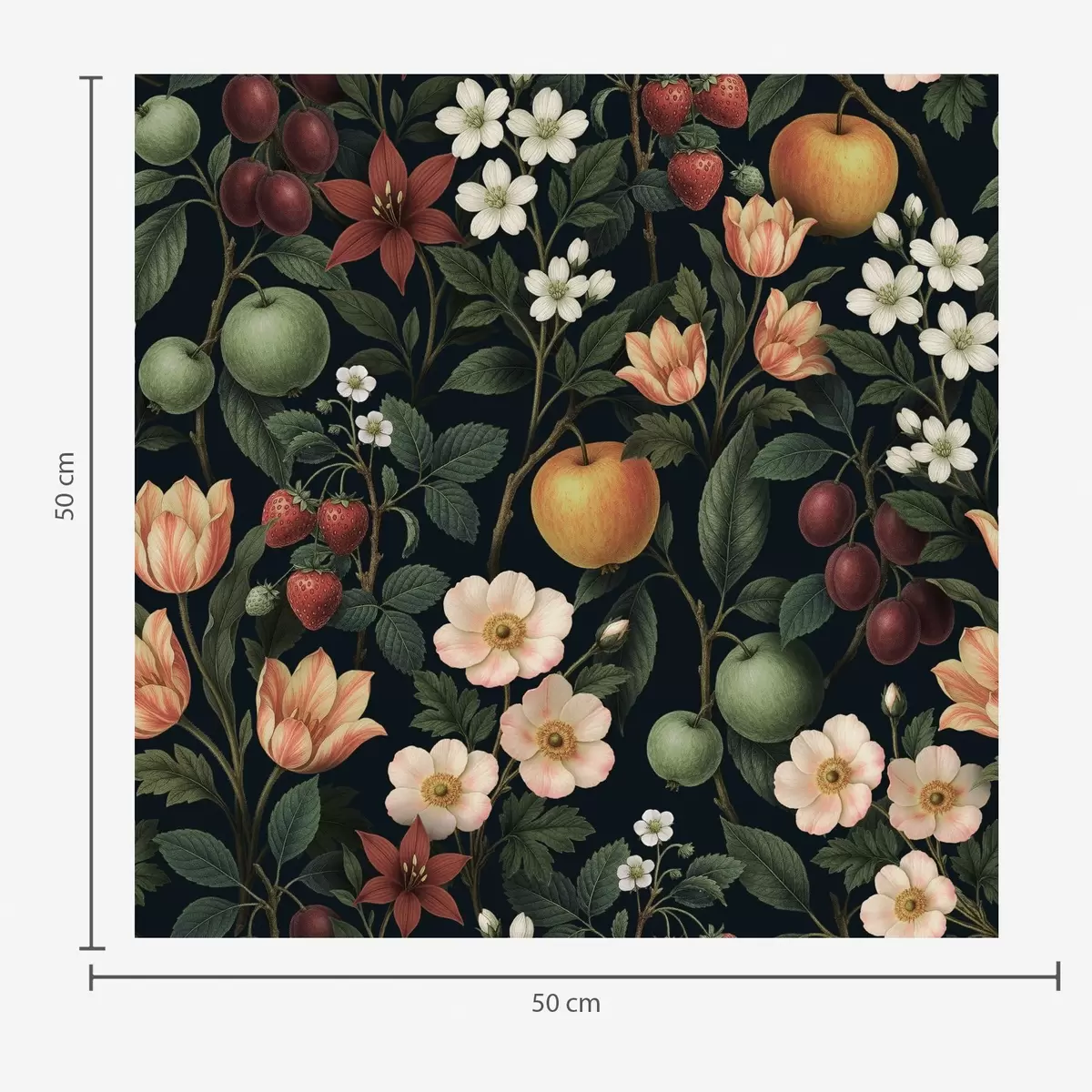 Papel de parede Jardim escuro com flores, maçãs maduras e bagas Nr. a01034