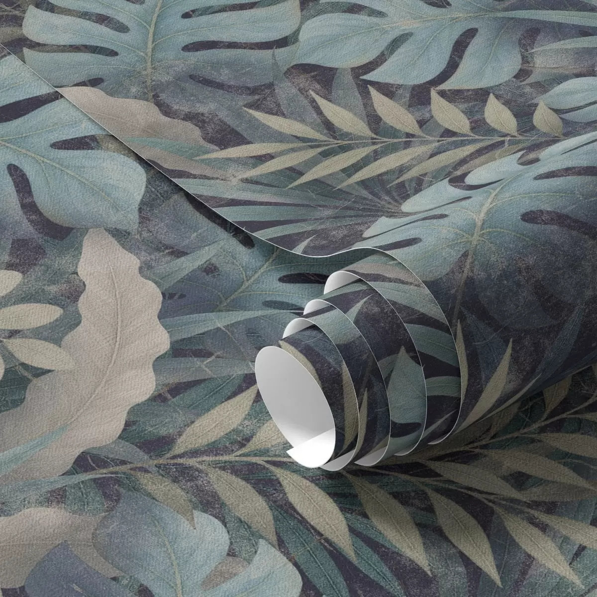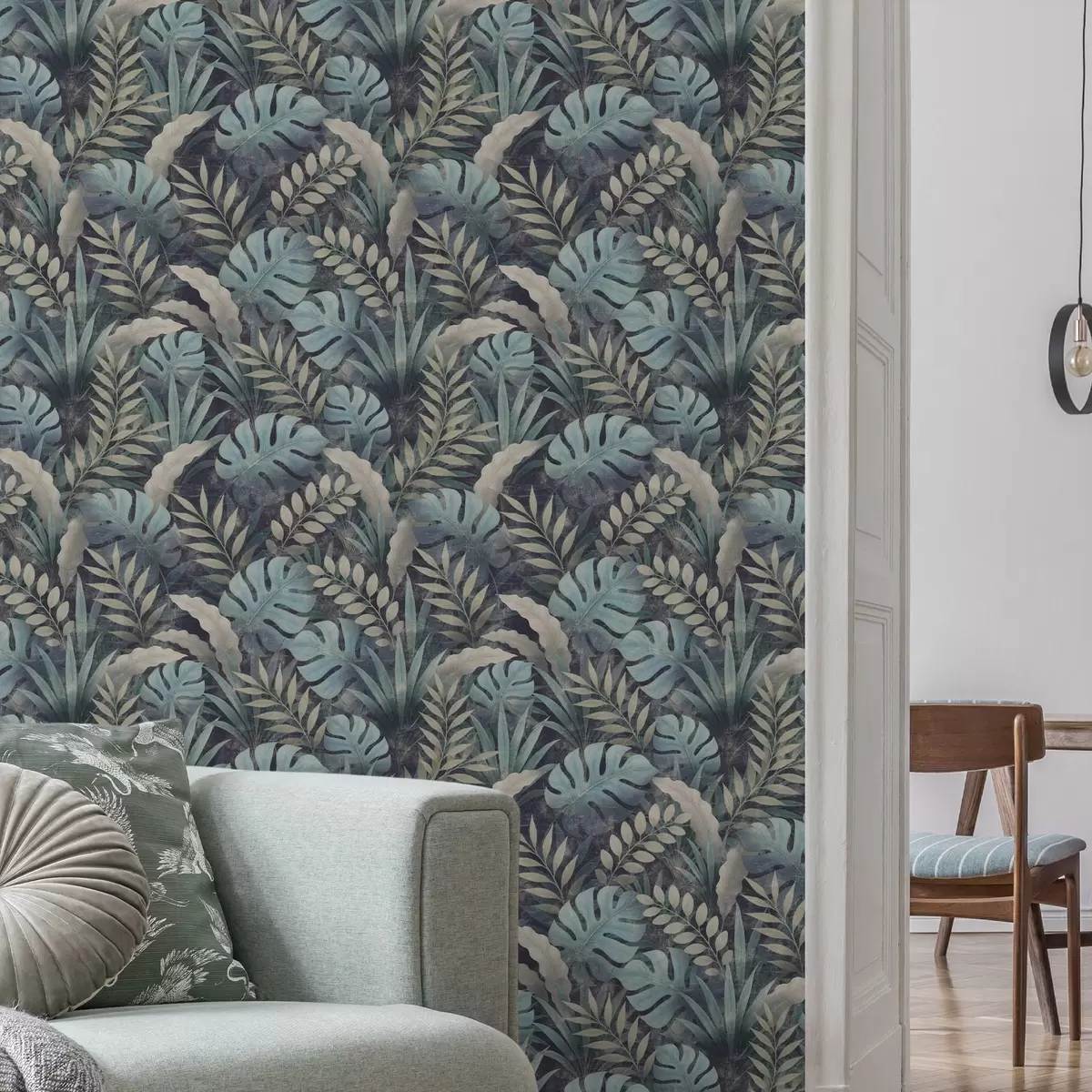 Papel de parede Folhagem tropical em tons frios de azul esverdeado Nr. a01035