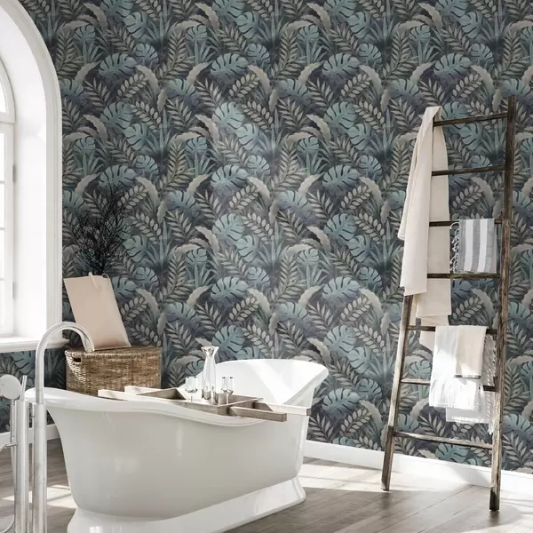 Papel de parede Folhagem tropical em tons frios de azul esverdeado Nr. a01035
