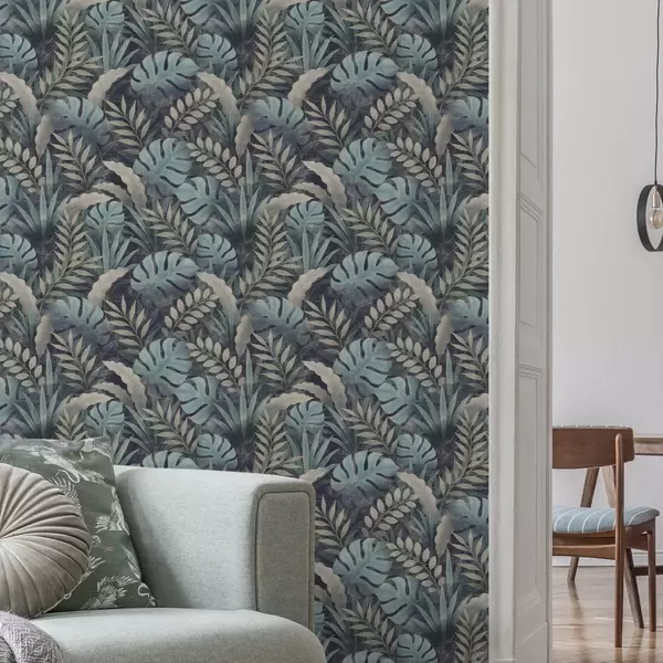Papel de parede Folhagem tropical em tons frios de azul esverdeado Nr. a01035