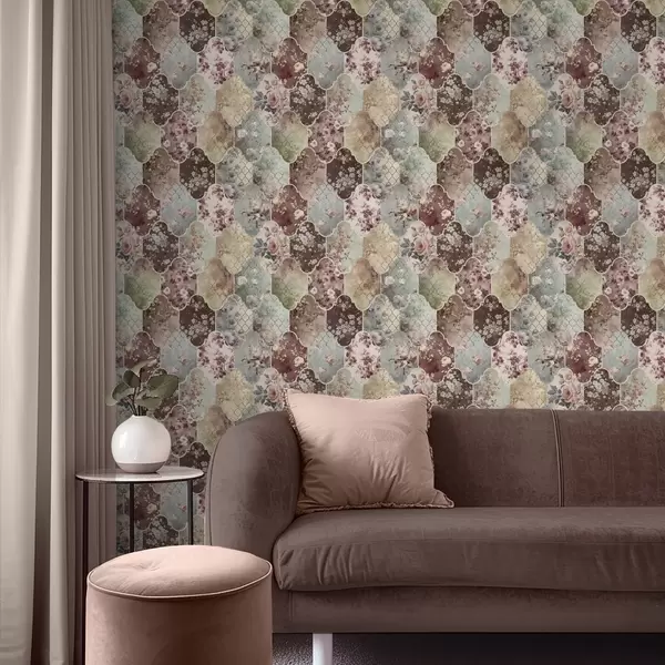 Papel de parede Mosaico de painéis florais e azulejos com padrões desgastados Nr. a01038