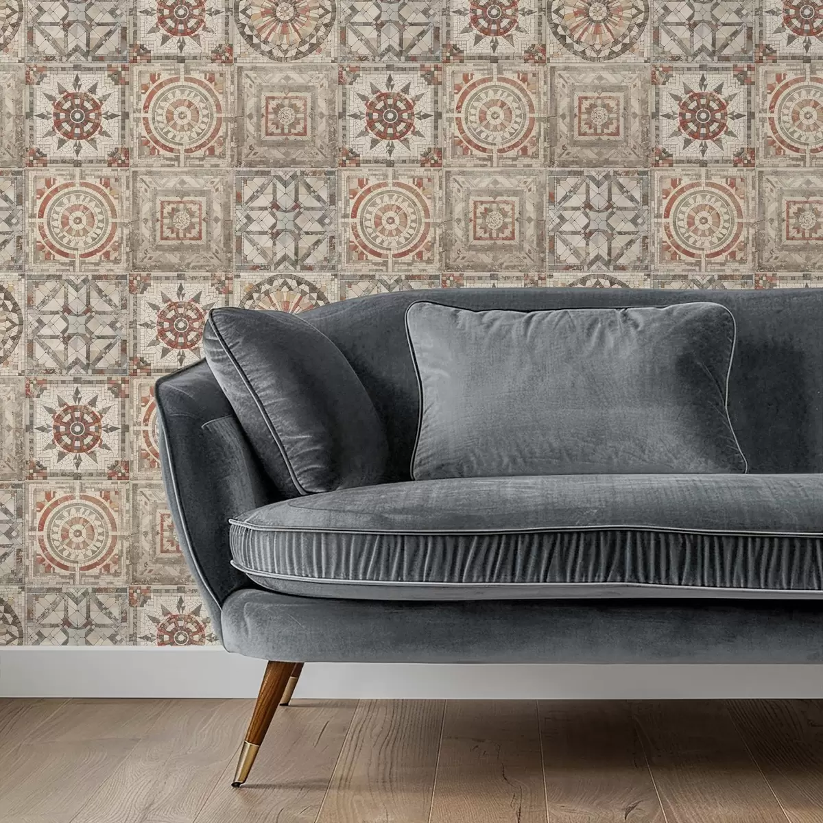 Papel de parede Medalhões antigos de mosaico de pedra com detalhes desgastados Nr. a01042