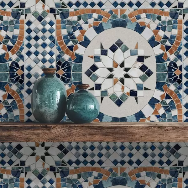 Papel de parede Mosaico marroquino brilhante em tons de azul-turquesa Nr. a01043