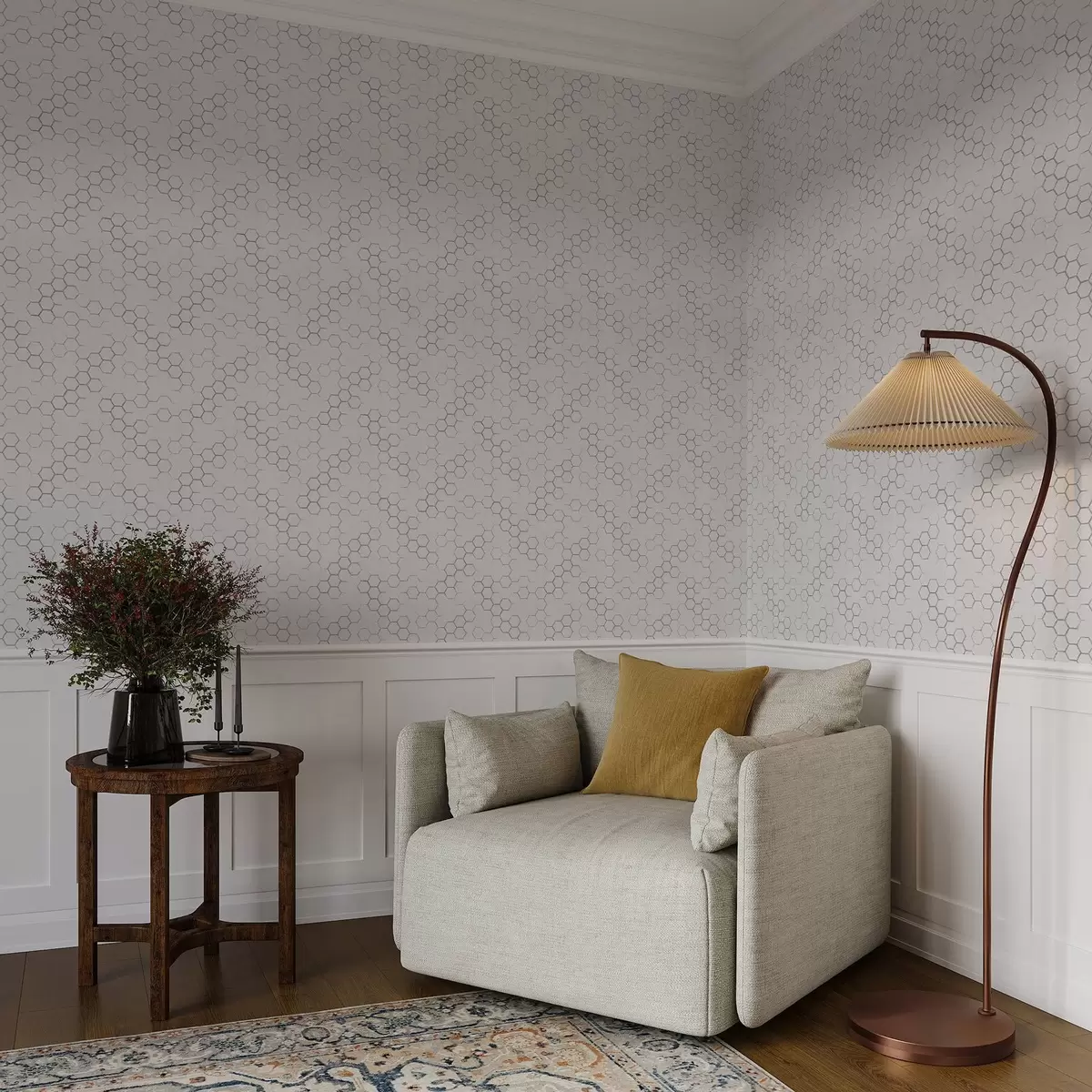 Papel de parede Padrão leve em forma de favo de mel com contornos finos em cinza Nr. a01061