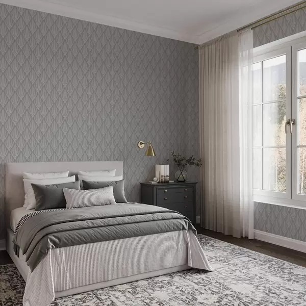 Papel de parede Art Déco cinza com formas em leque Nr. a01064