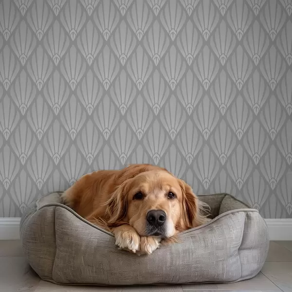 Papel de parede Art Déco cinza com formas em leque Nr. a01064