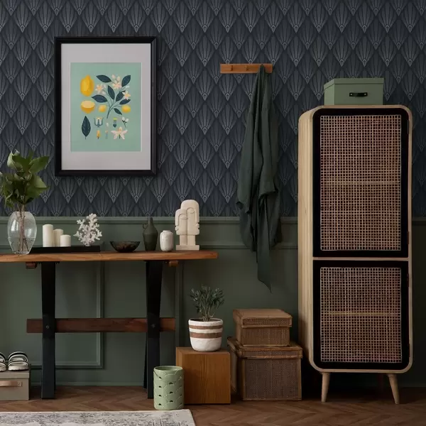 Papel de parede Art Déco azul-acinzentado com formas em leque Nr. a01064v3