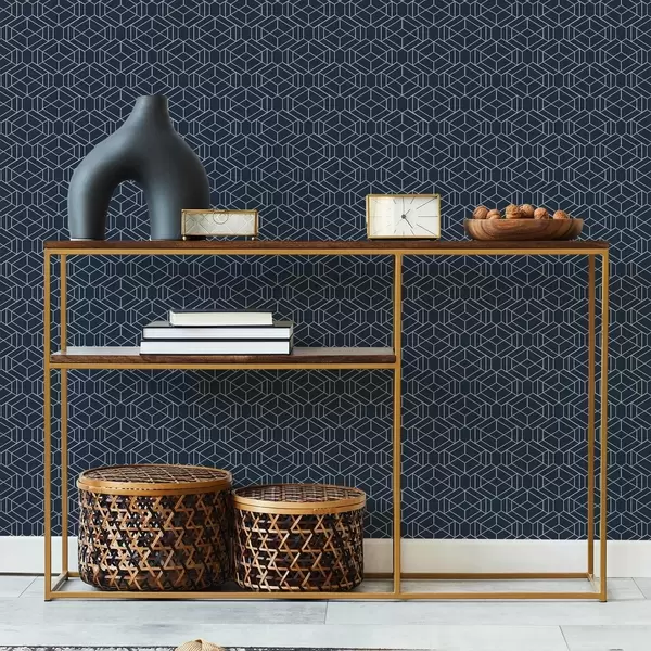 Papel de parede Rede geométrica de cubos em azul marinho escuro a01066v1