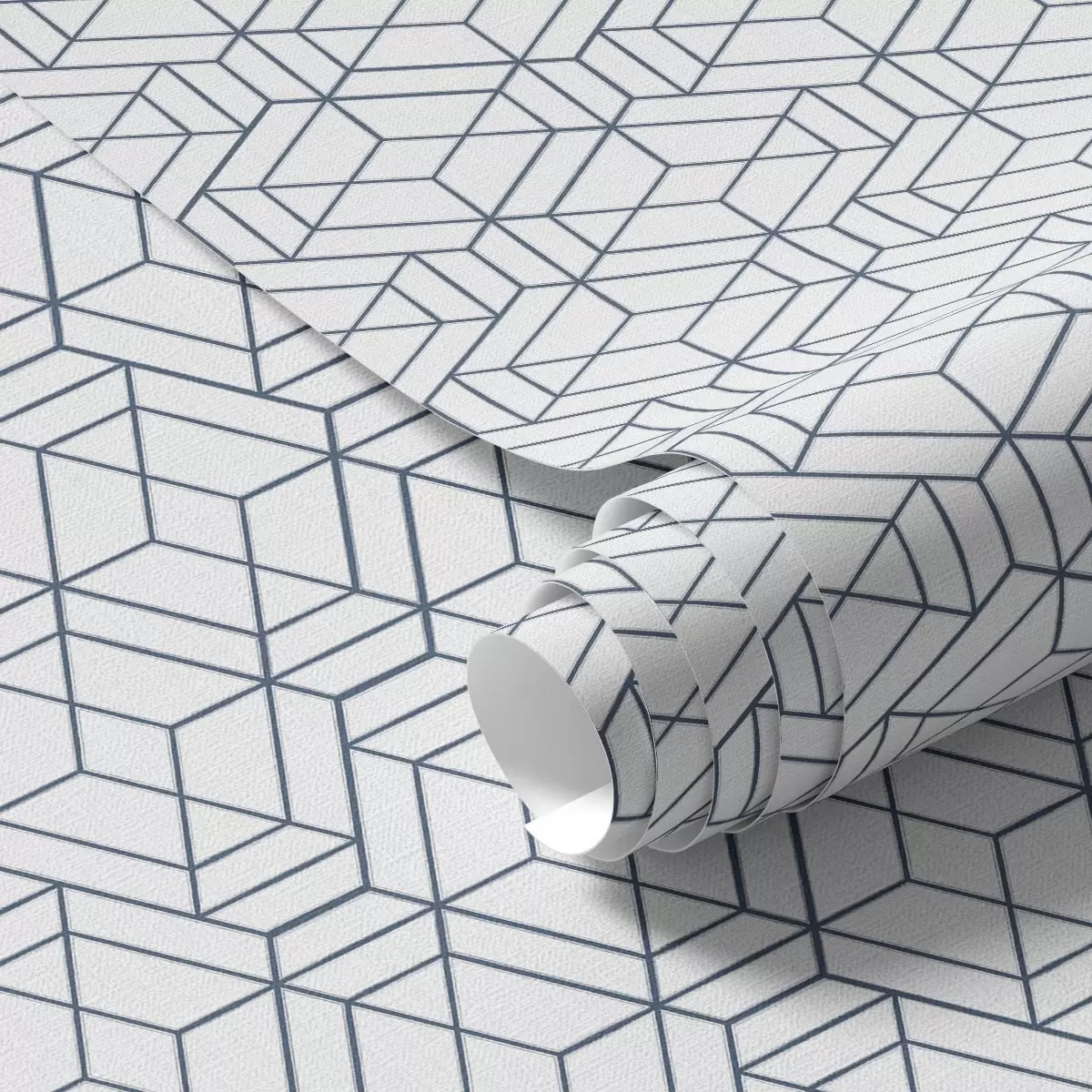Papel de parede Fundo branco com cubos geométricos tridimensionais azuis Nr. a01067