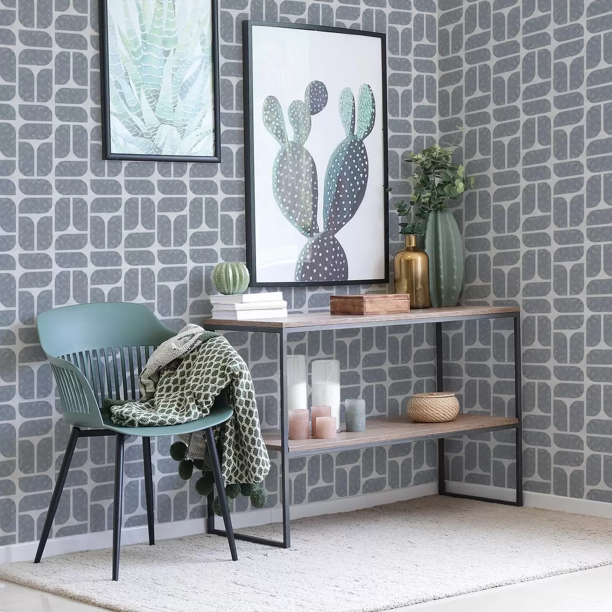 Papel de parede Mosaico cinza alternando formas arredondadas e retangulares Nr. a01069