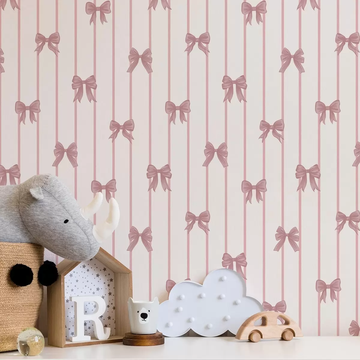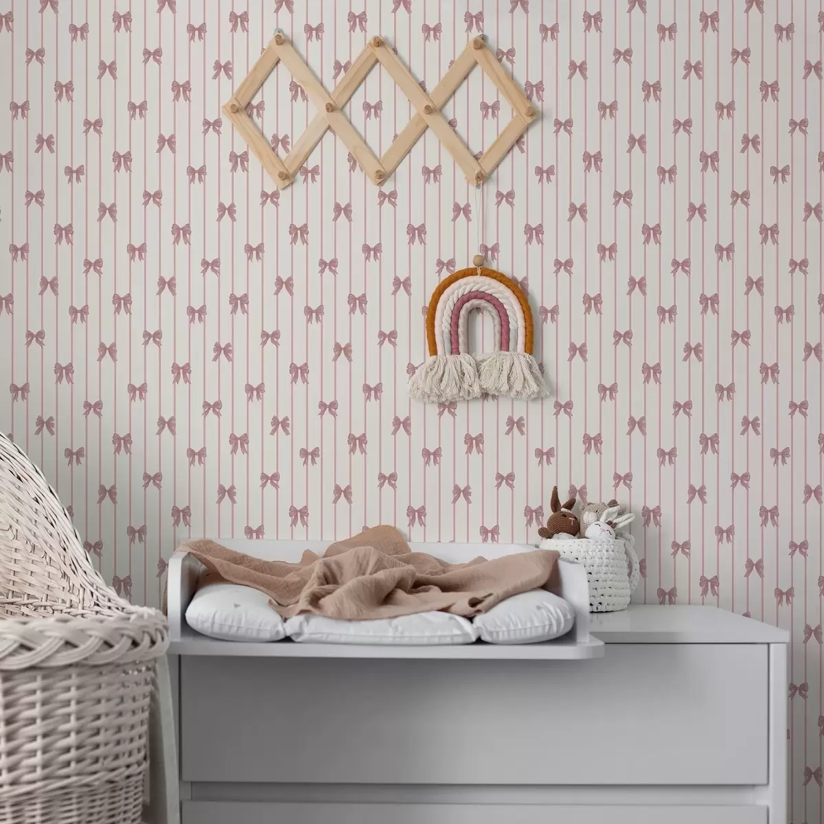 Papel de parede Pequenos laços rosa em listras verticais Nr. a01076