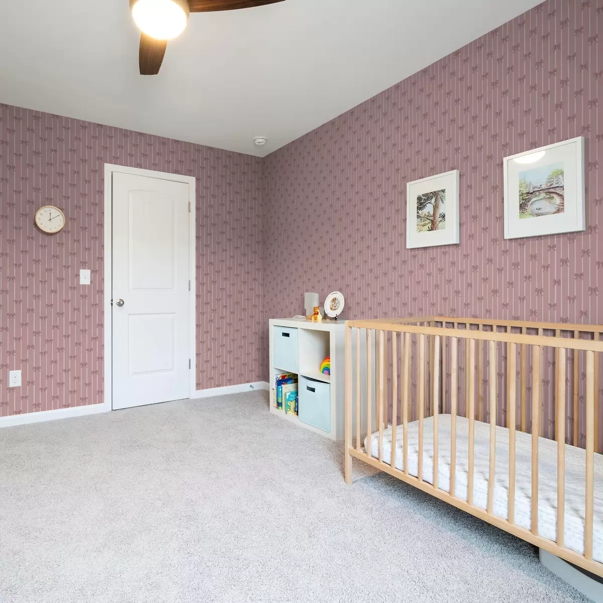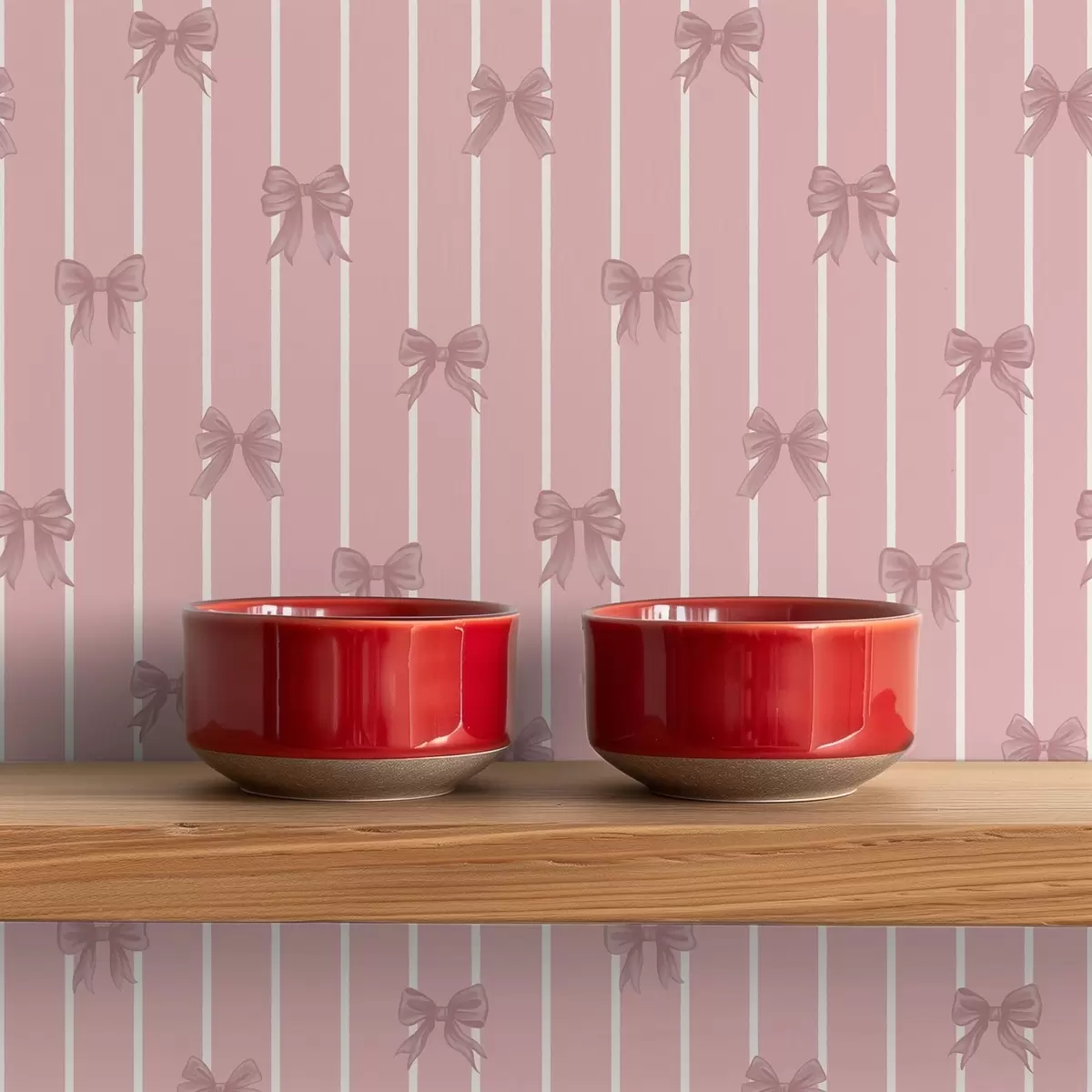 Papel de parede Pequenos laços cor-de-rosa sobre um fundo listrado de rosa Nr. a01076v1