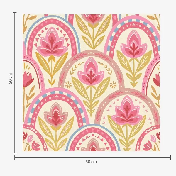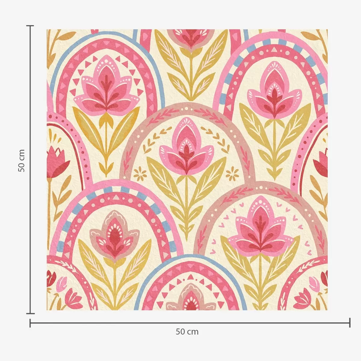 Papel de parede Arcos com flores cor-de-rosa num padrão de estilo folclórico Nr. a01080