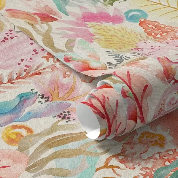 Papel de parede Jardim subaquático em aquarela com corais e algas marinhas Nr. a01083