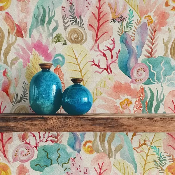 Papel de parede Jardim subaquático em aquarela com corais e algas marinhas Nr. a01083