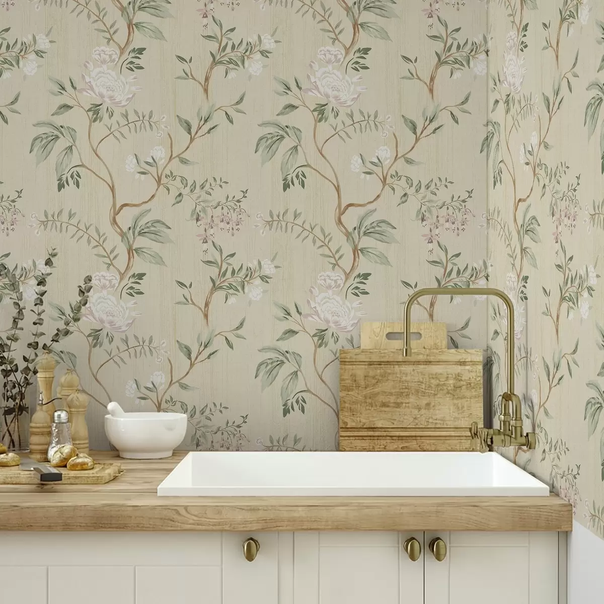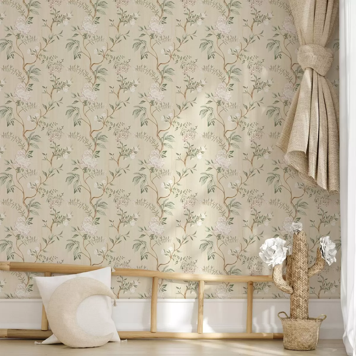 Papel de parede Galhos delicados com flores sobre um fundo creme quente Nr. a01084