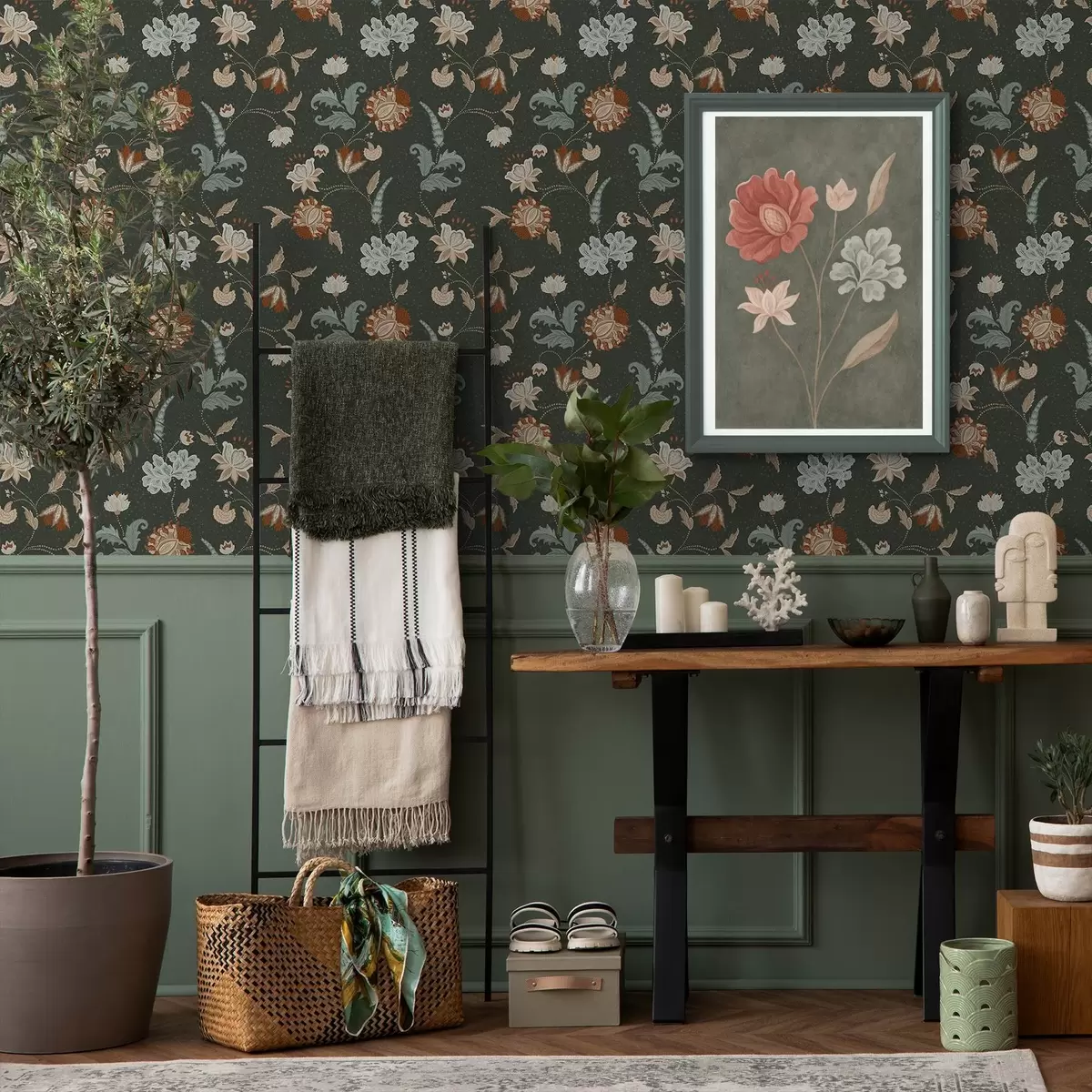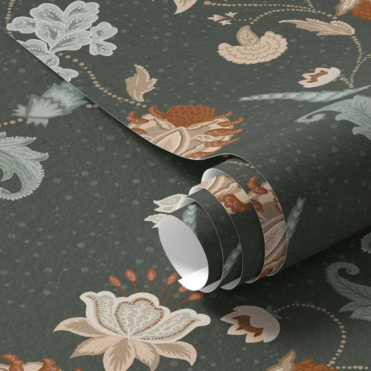 Papel de parede Fundo verde escuro com flores e folhas decorativas Nr. a01086