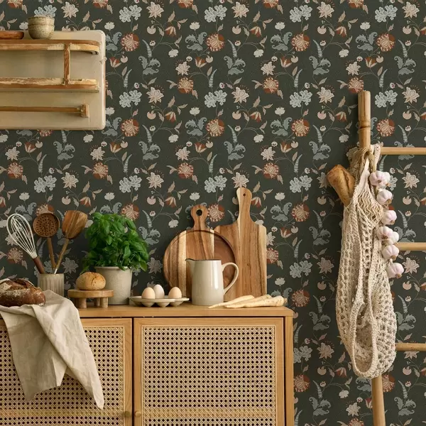 Papel de parede Fundo verde escuro com flores e folhas decorativas Nr. a01086