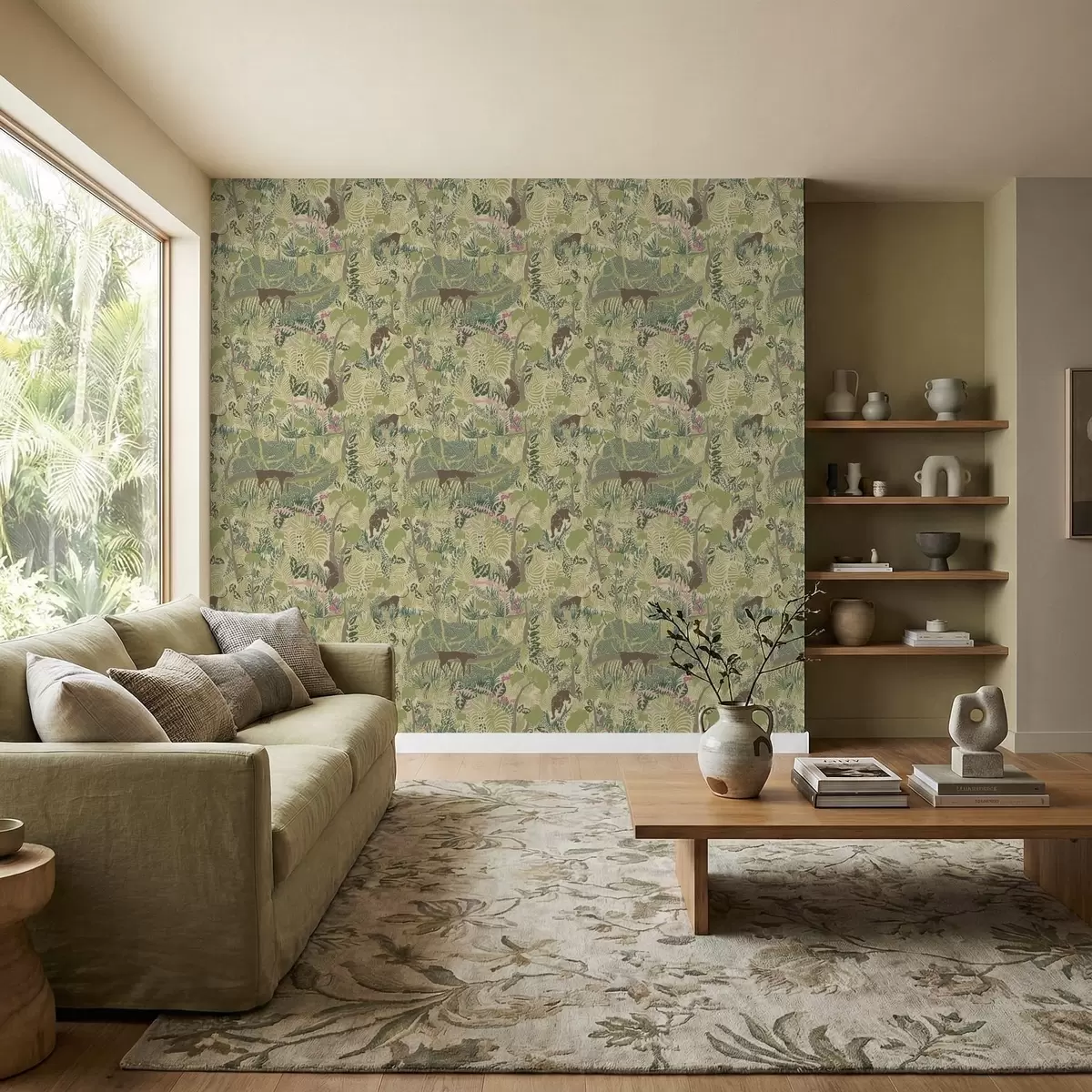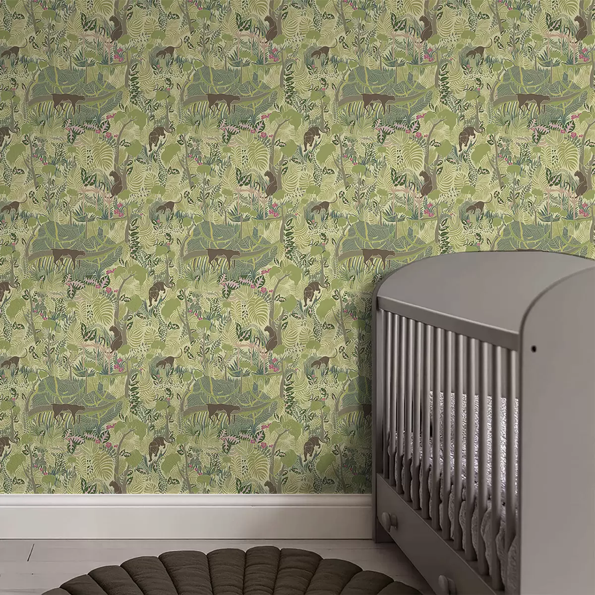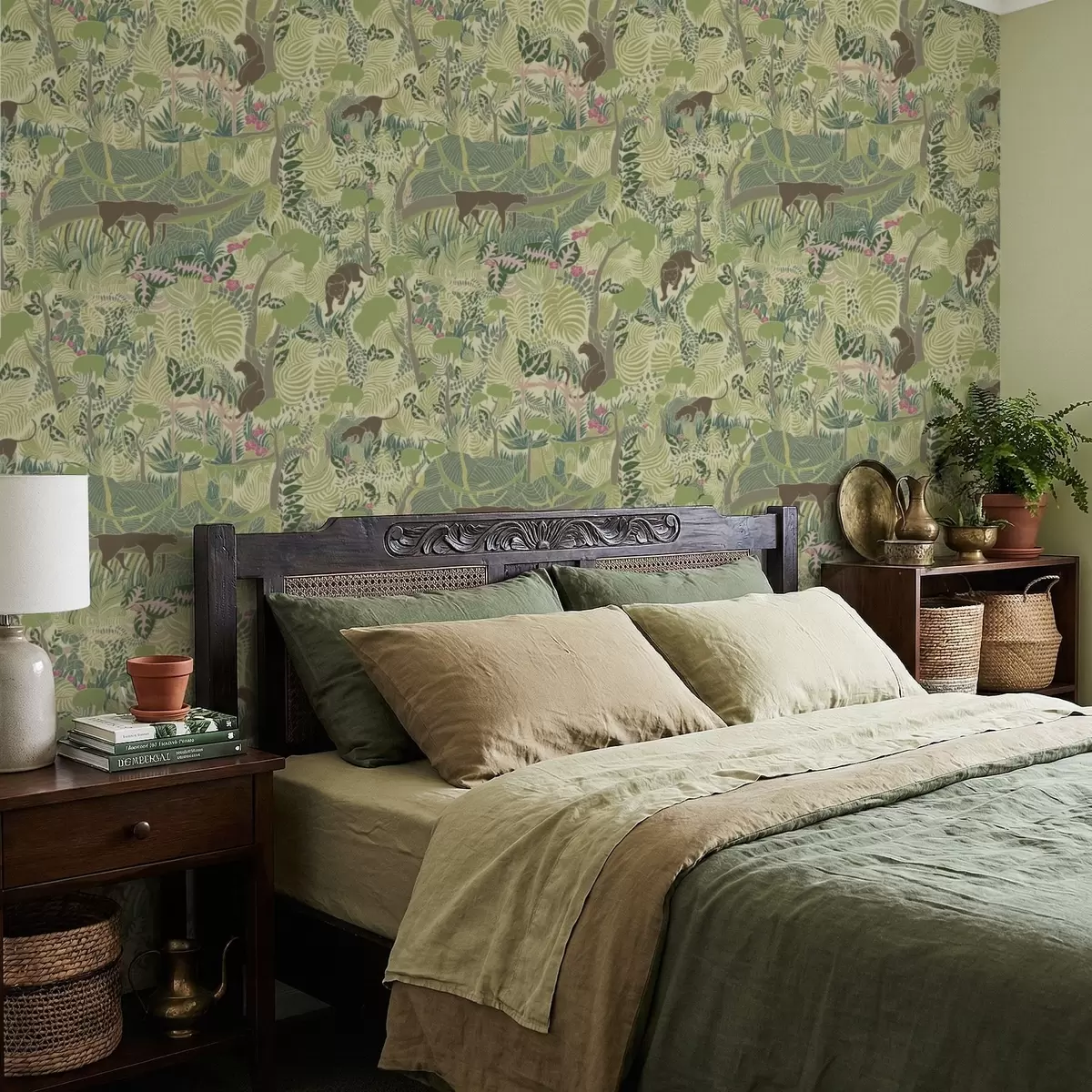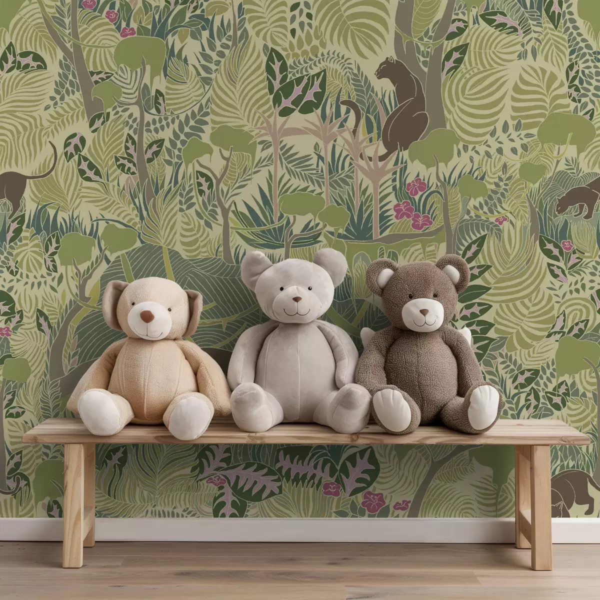 Papel de parede Cena florestal com animais e folhagem densa Nr. a01108