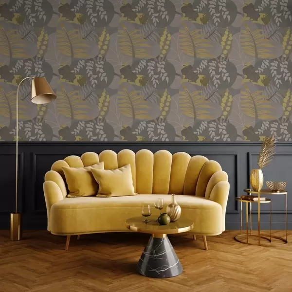 Papel de parede Folhas abstratas em tons de cinza e amarelo Nr. a01112