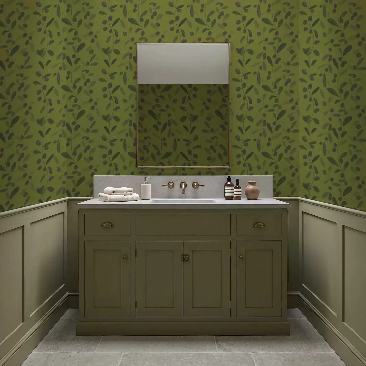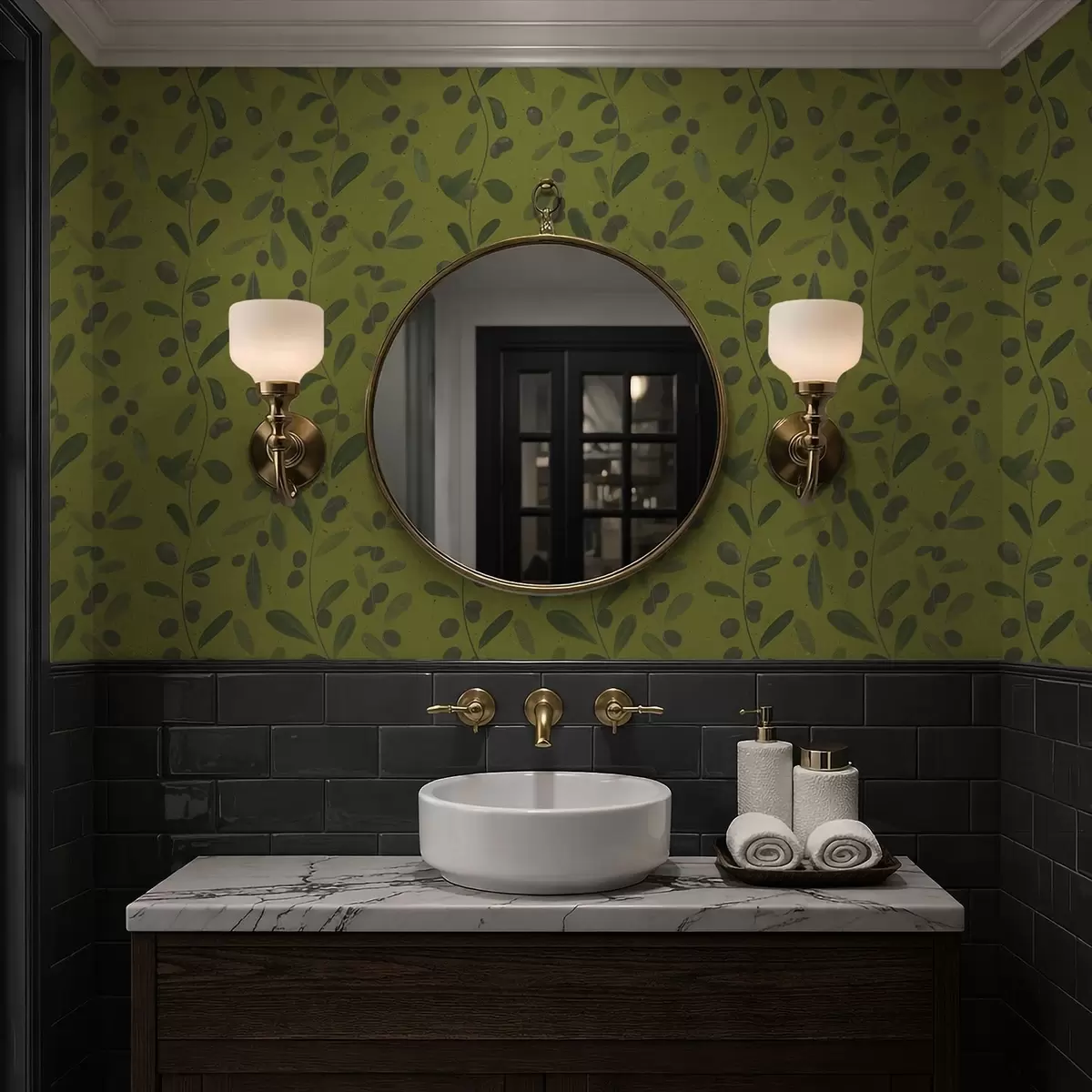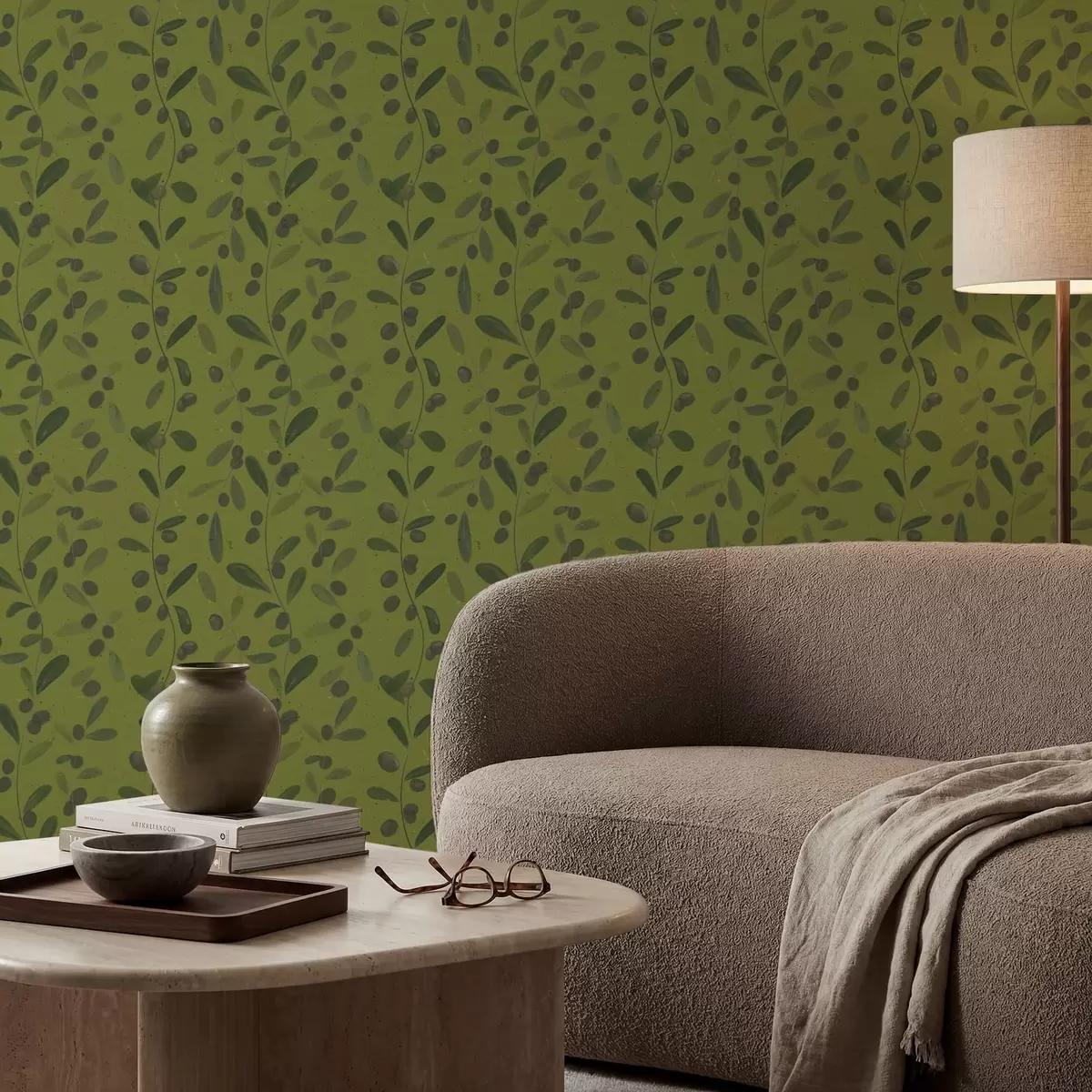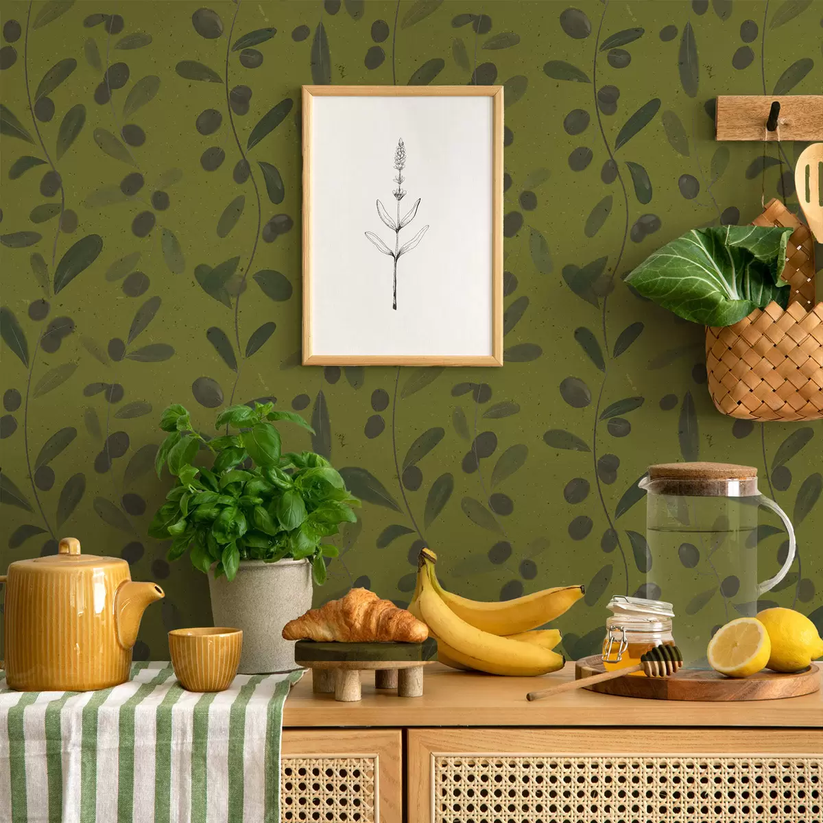 Papel de parede Galhos verdes com folhas e frutos na oliveira Nr. a01113