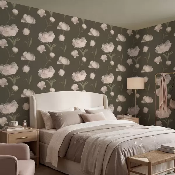 Papel de parede Peônias rosa suave sobre fundo escuro a01114v1