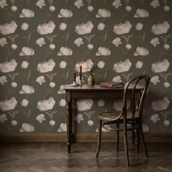 Papel de parede Peônias rosa suave sobre fundo escuro Nr. a01114v1
