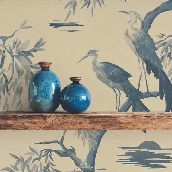 Papel de parede Pássaros em um galho em tons de azul Nr. a01116