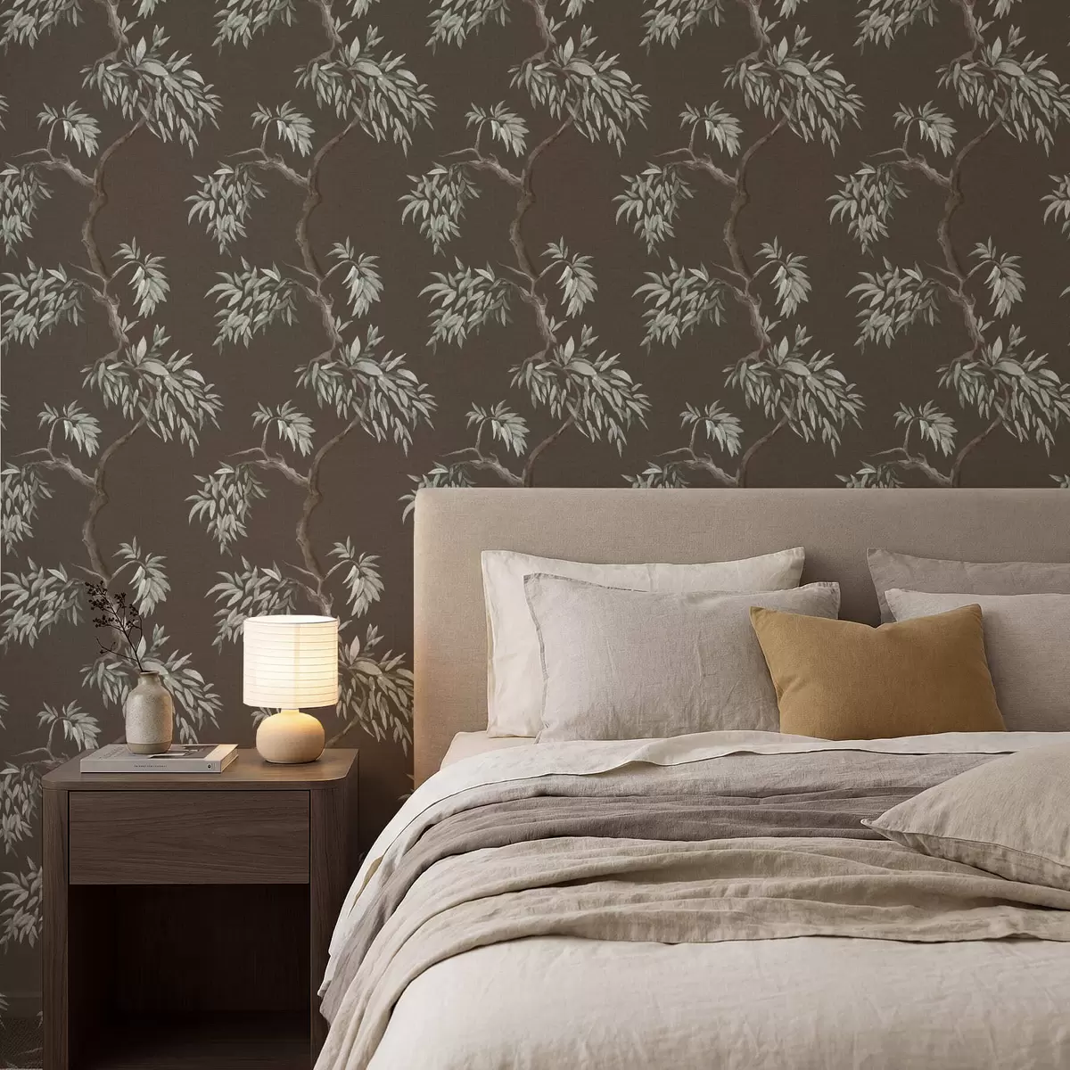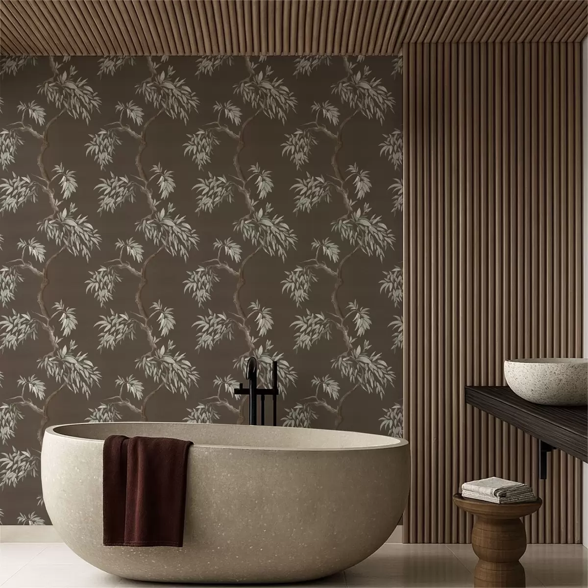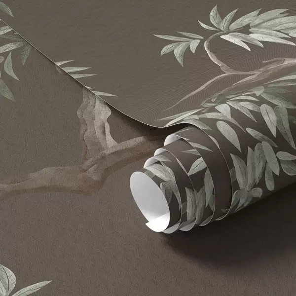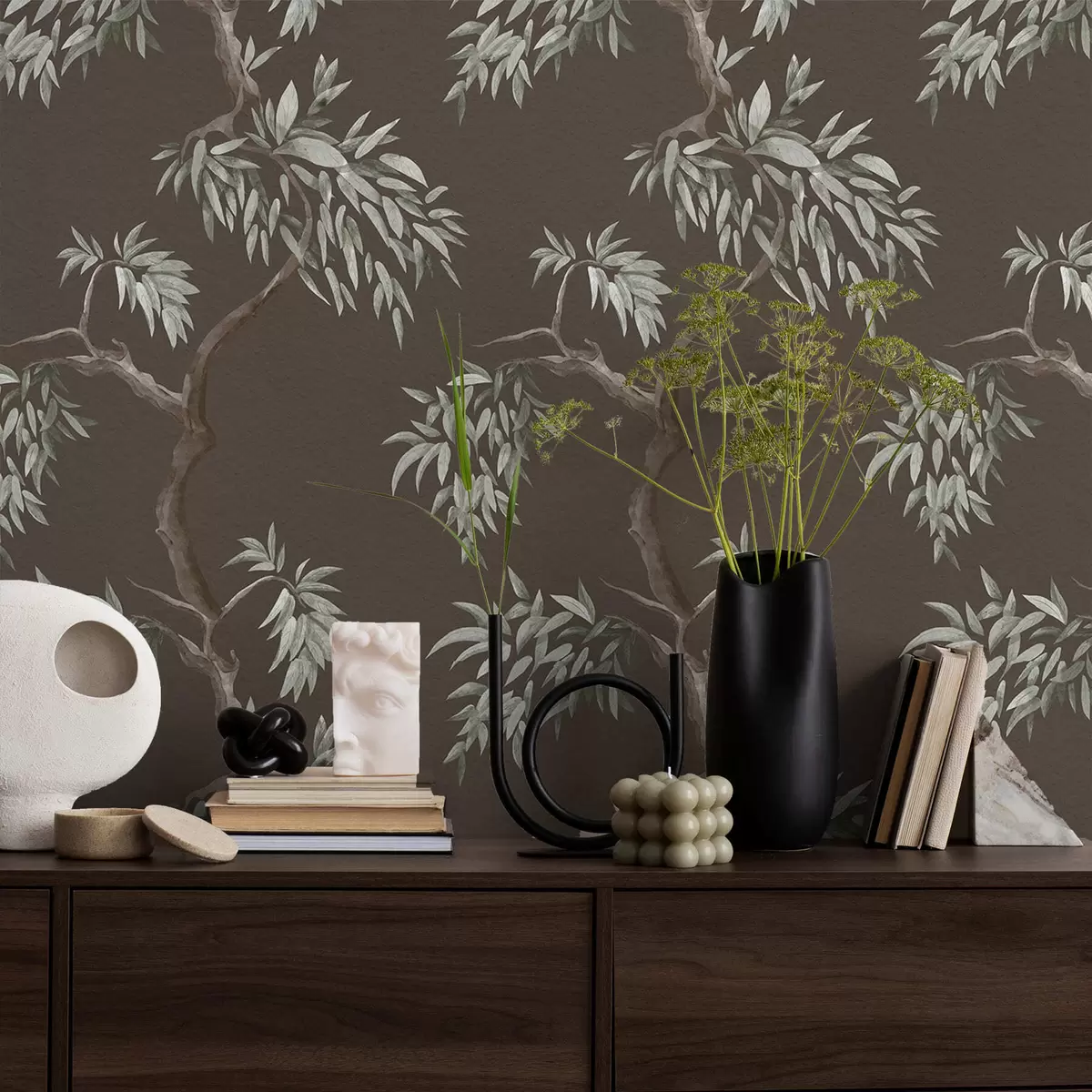 Papel de parede Galho de árvore com folhas sobre fundo marrom Nr. a01117v3