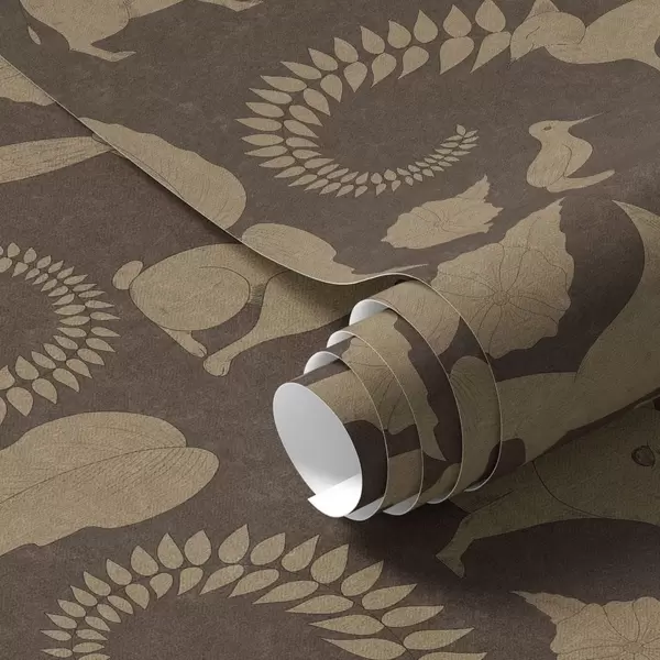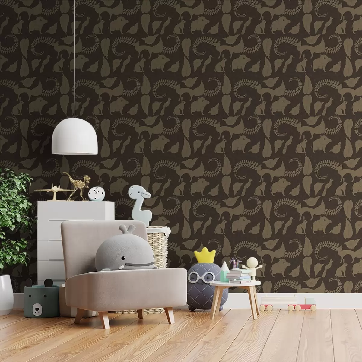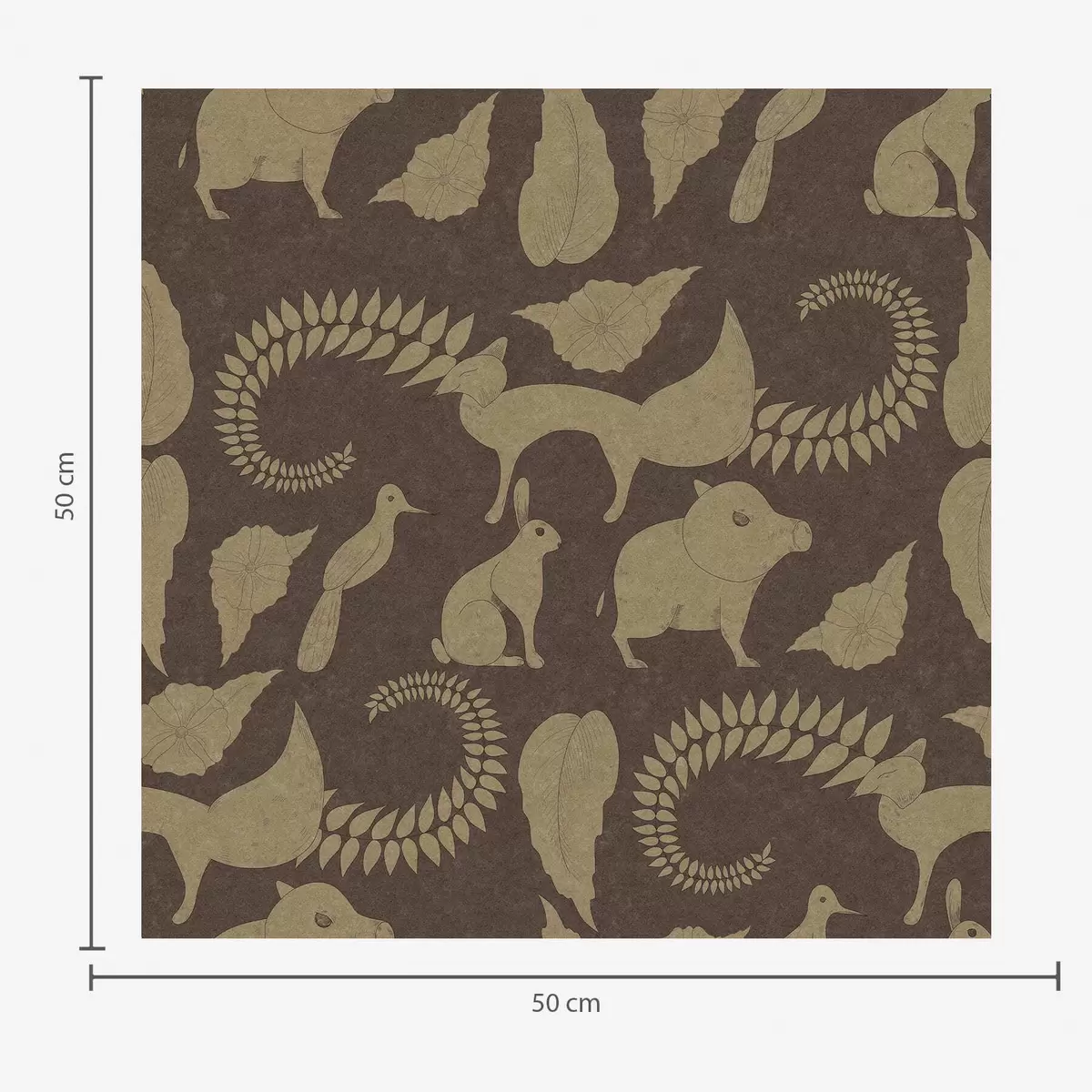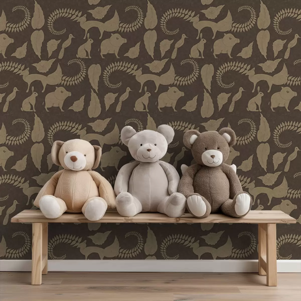 Papel de parede Padrão florestal com animais sobre fundo marrom Nr. a01121