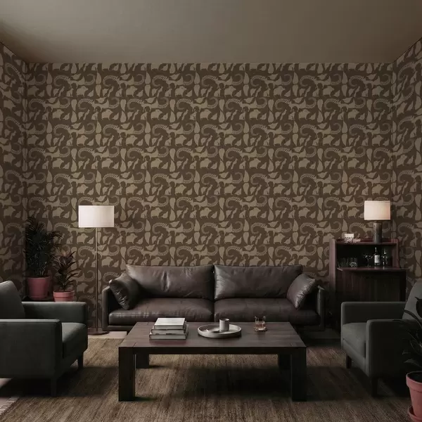 Papel de parede Padrão florestal com animais sobre fundo marrom Nr. a01121