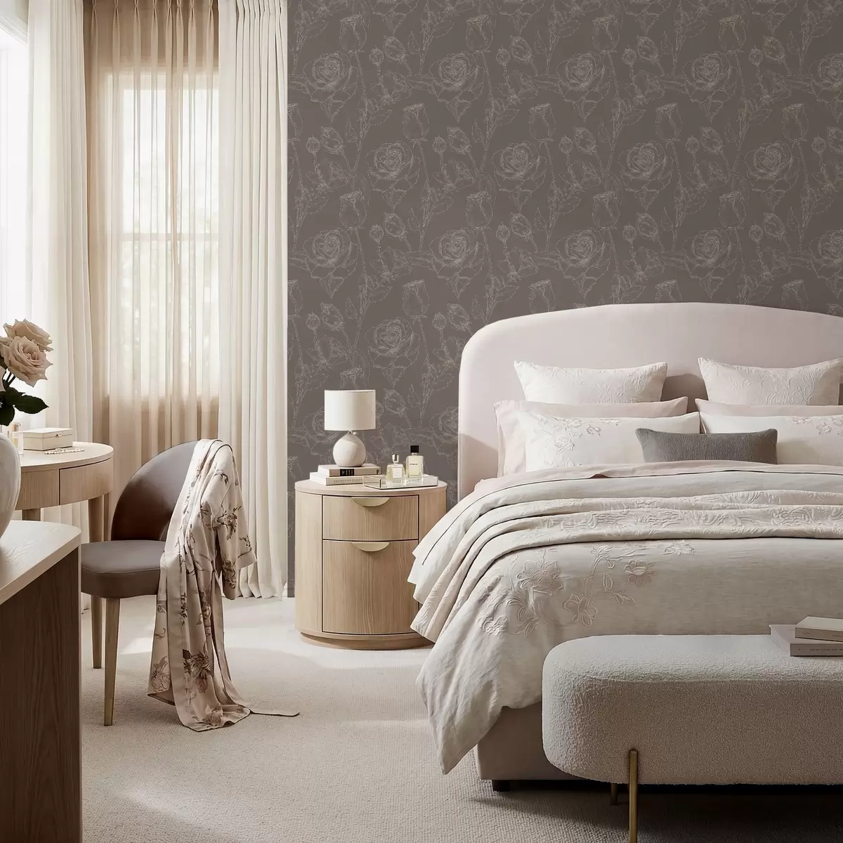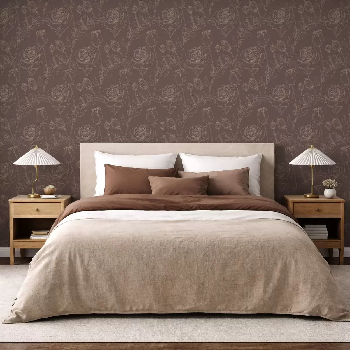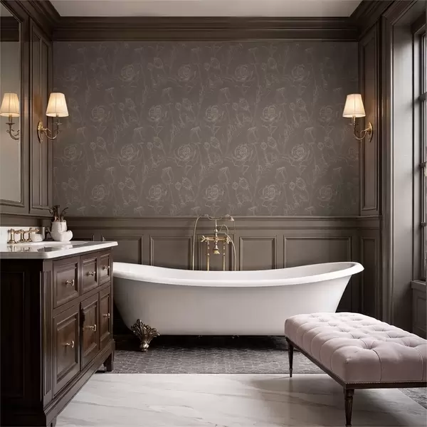 Papel de parede Padrão de rosas escuras sobre fundo marrom Nr. a01124v1