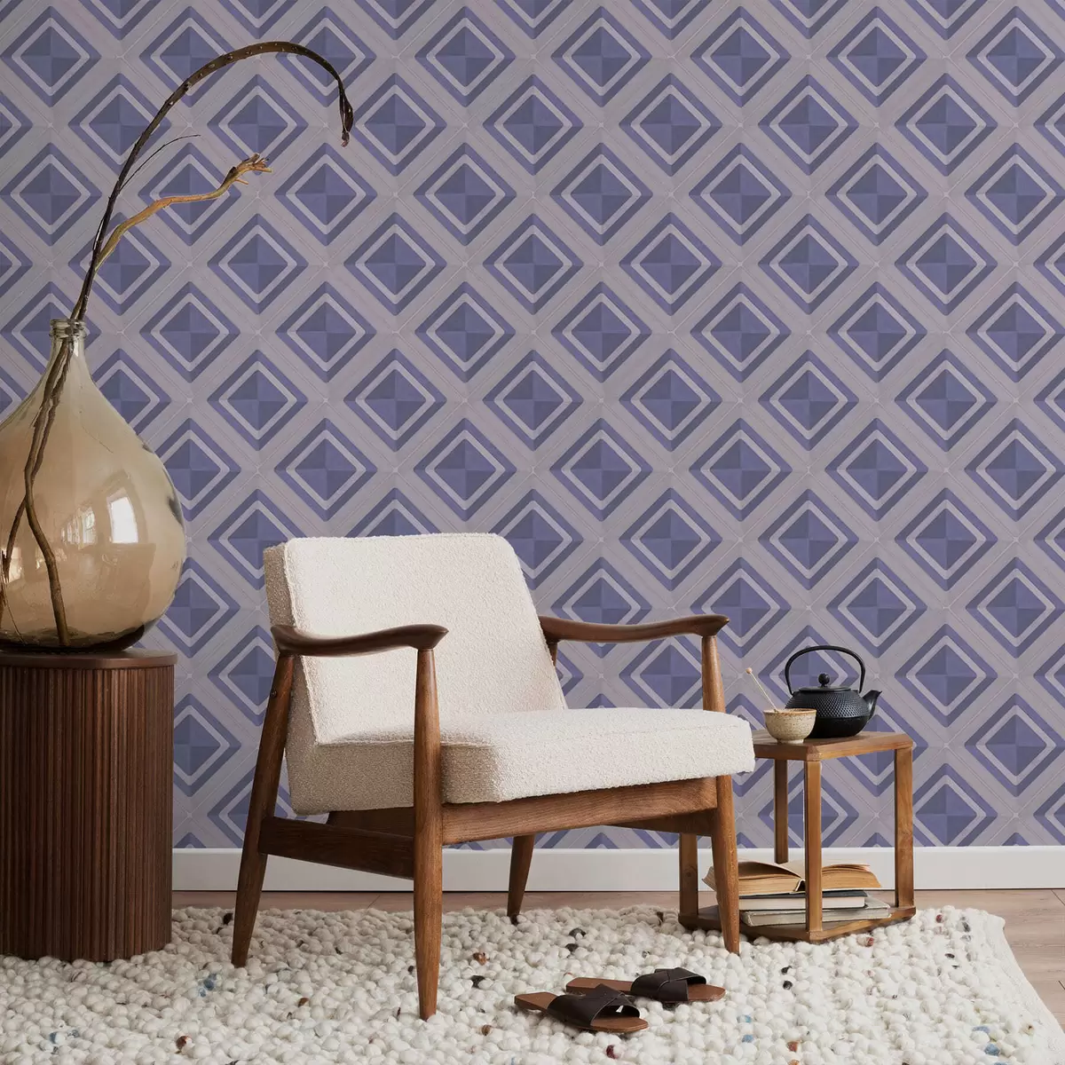 Papel de parede Padrão geométrico em losangos em tons de azul Nr. a01128v1