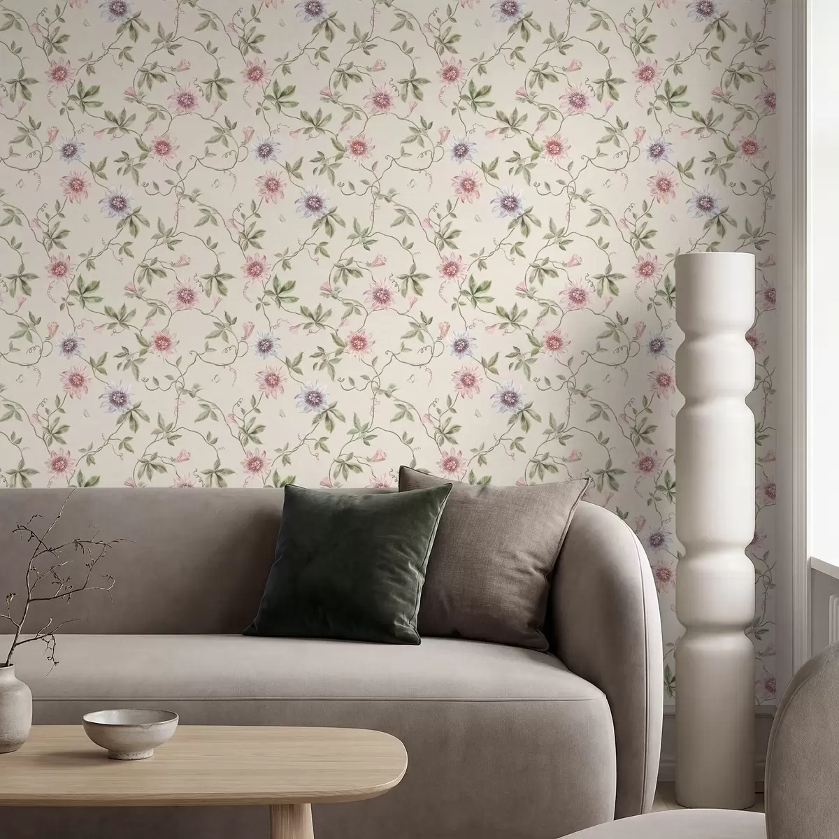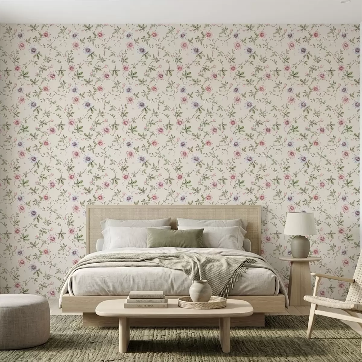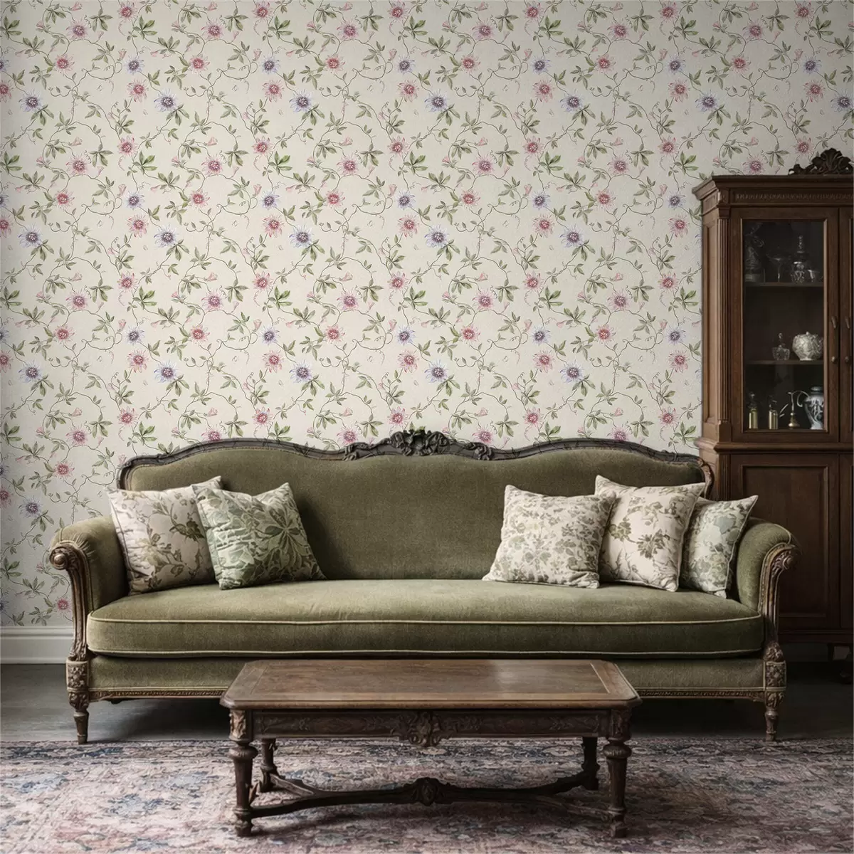 Papel de parede Padrão com flores exóticas e trepadeiras Nr. a01131