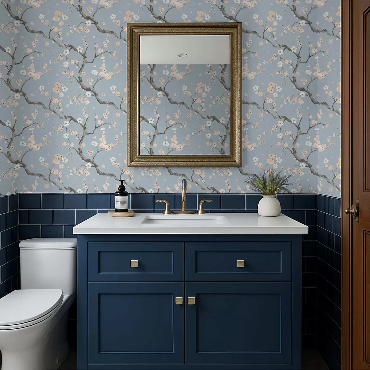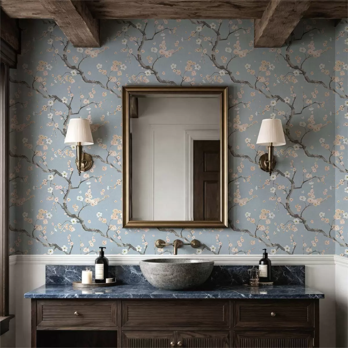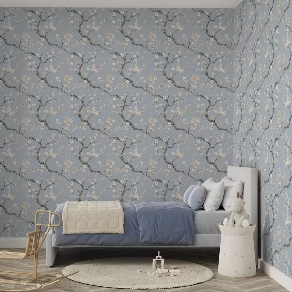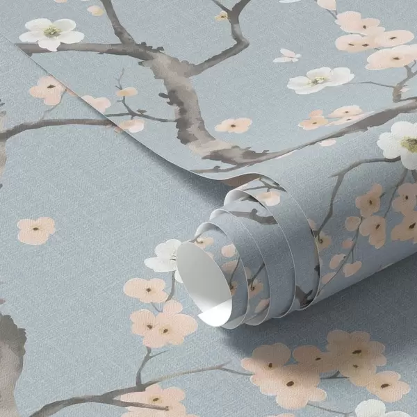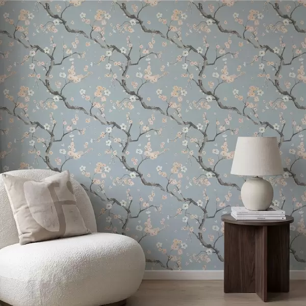 Papel de parede Galhos com flores sobre fundo azul Nr. a01155